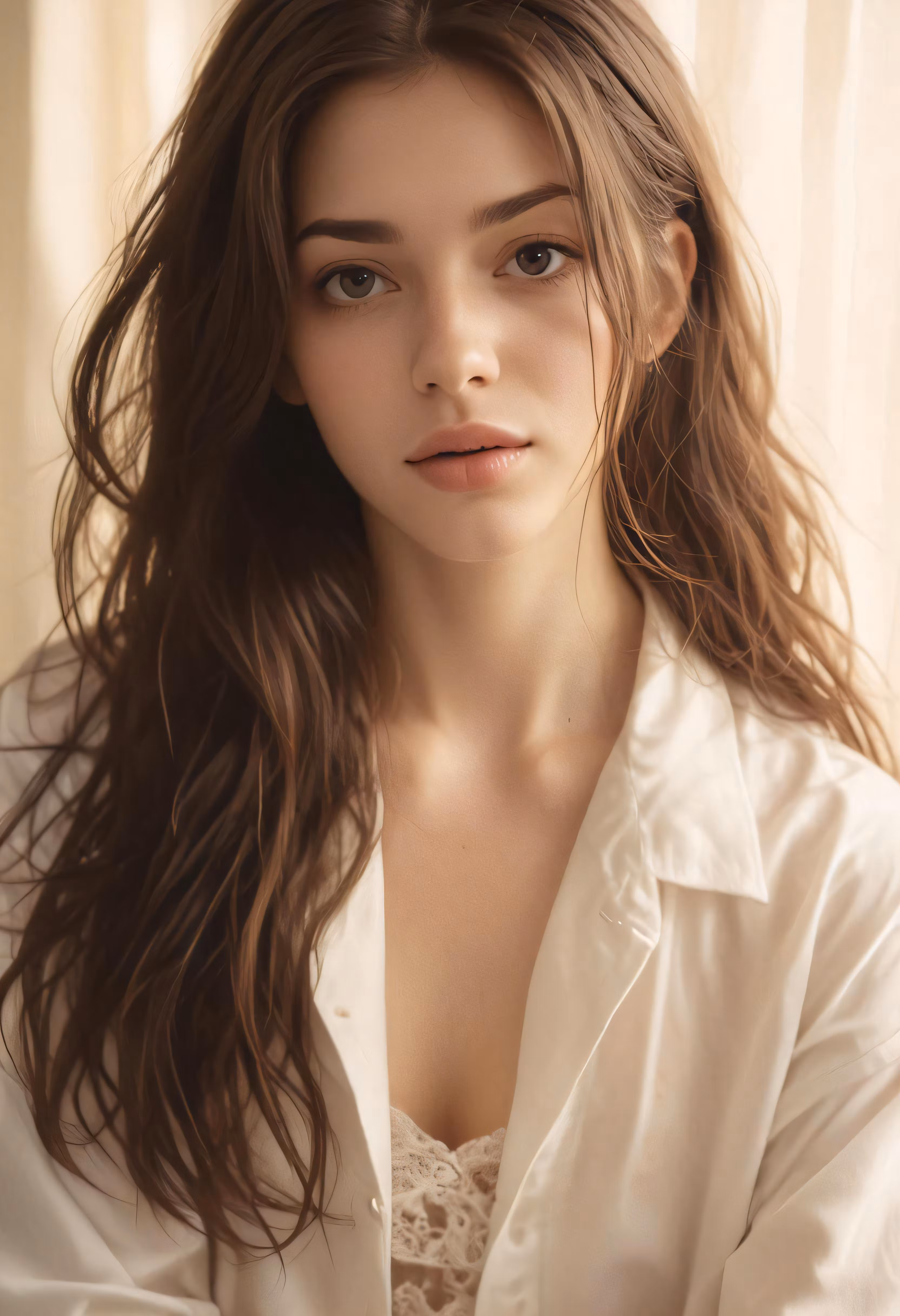 High resolution picture, free to use, woman in shirt poses for a portrait by michael munni