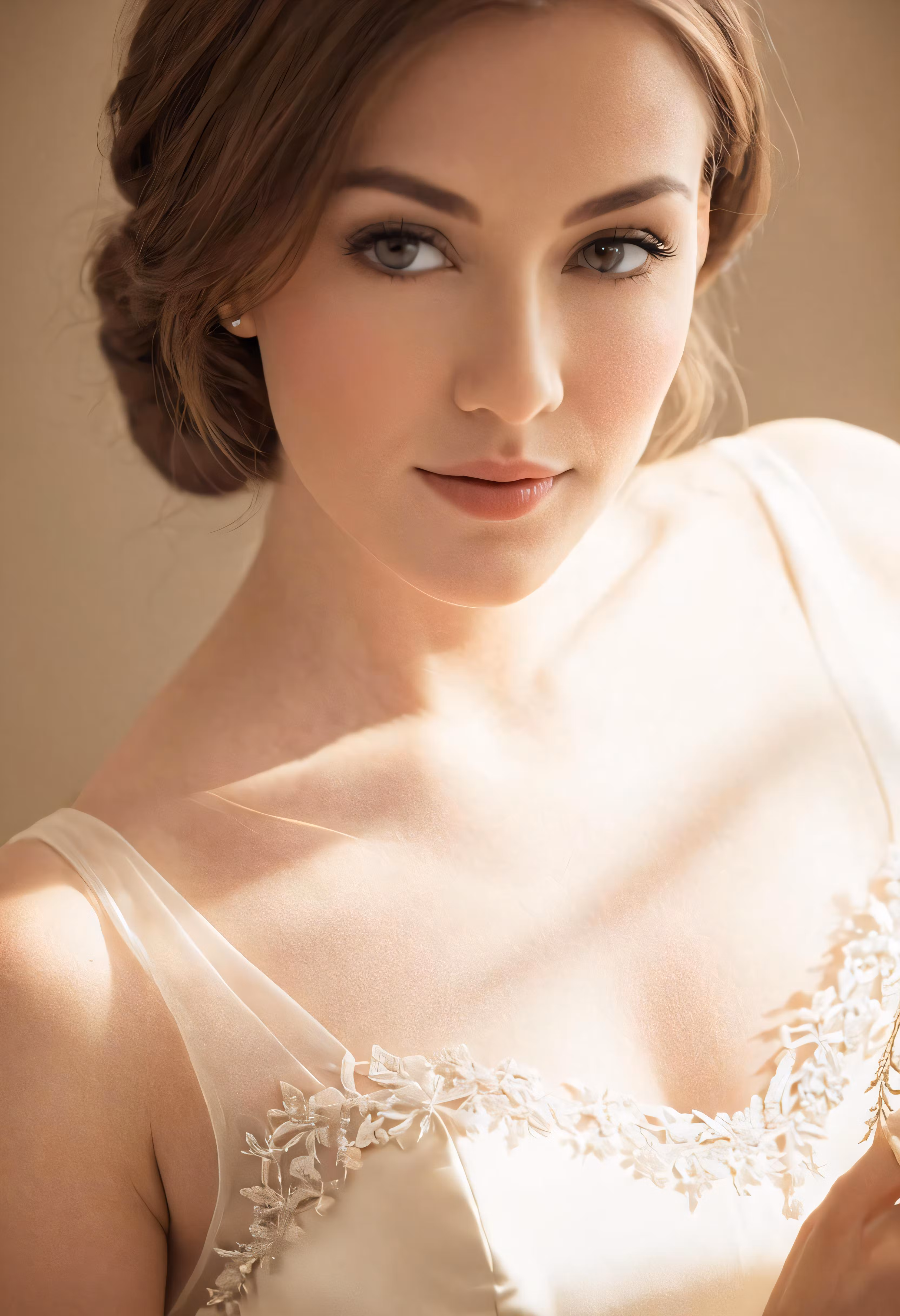 High resolution picture, free to use, woman in white dress with braided hair and blue eyes