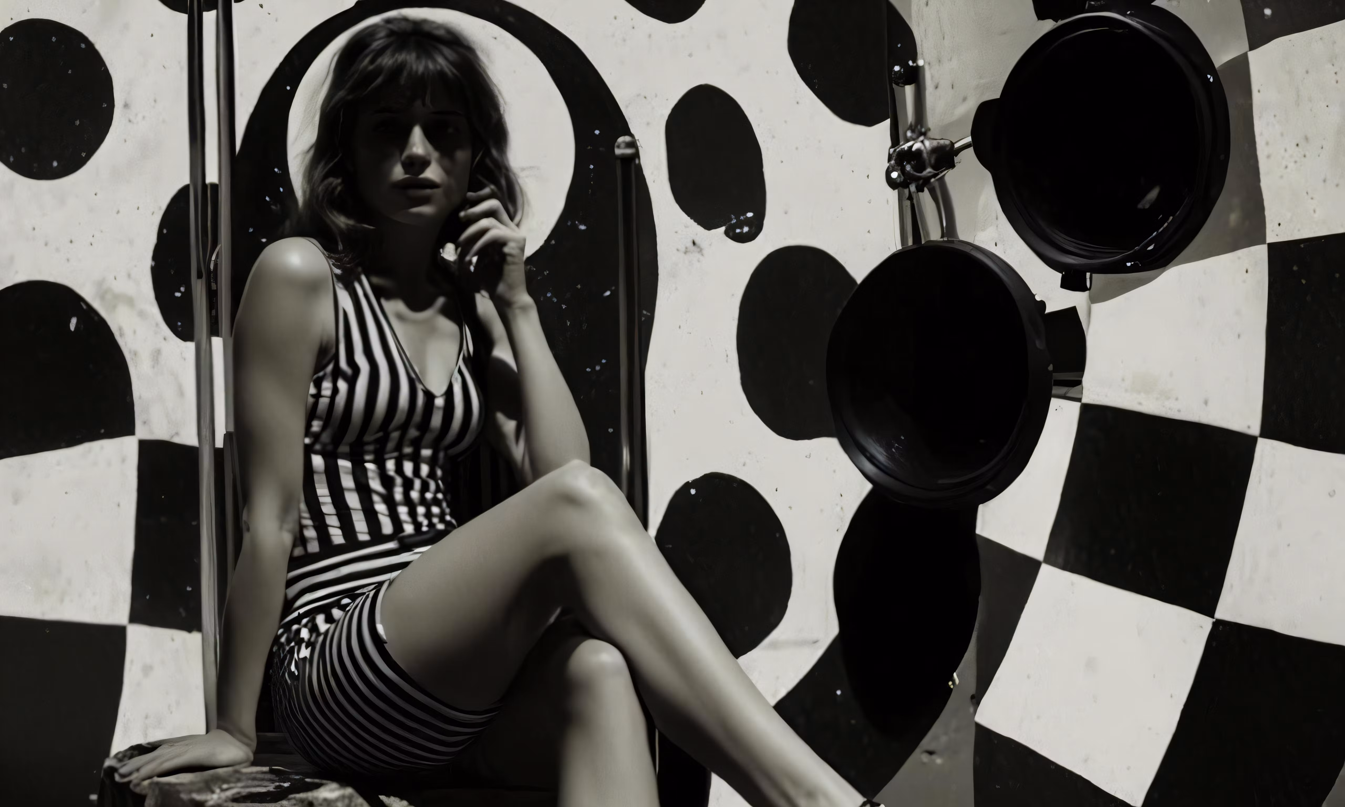 High resolution picture, free to use, woman sitting on a stool with a phone in her hand