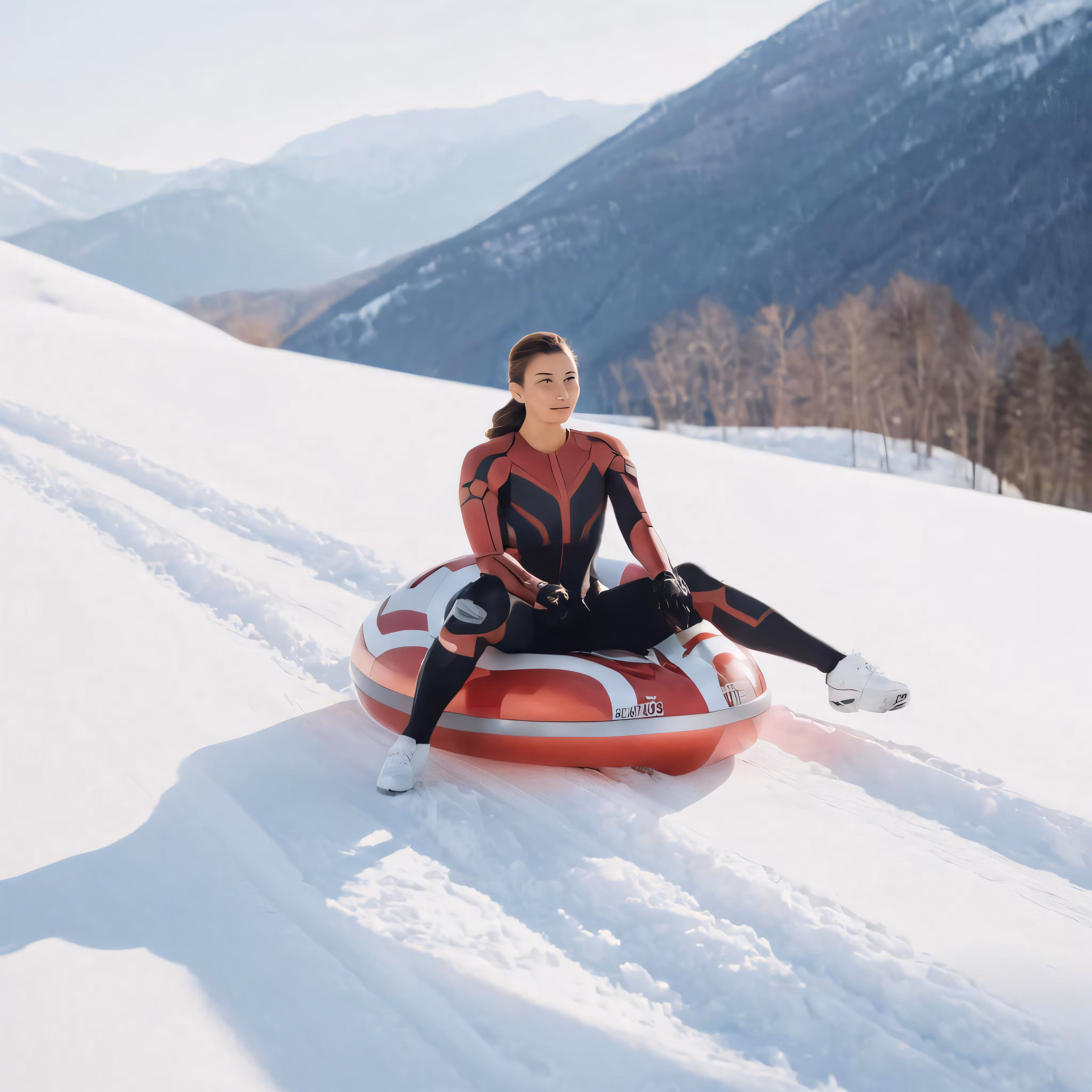 High resolution picture, free to use, woman sitting on top of a snow sled in the snow