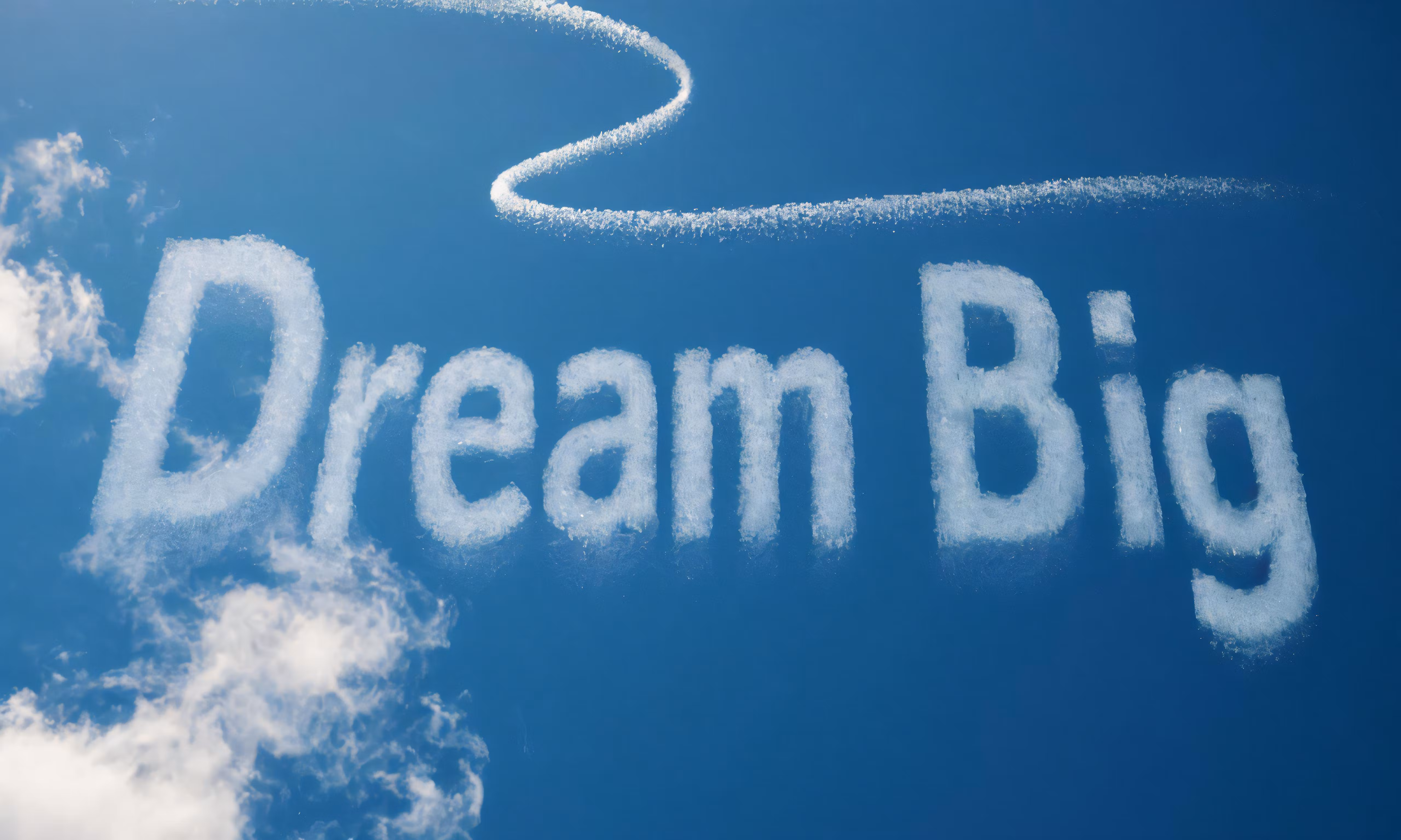 High resolution picture, free to use, words drawn on a sky to create dream and big