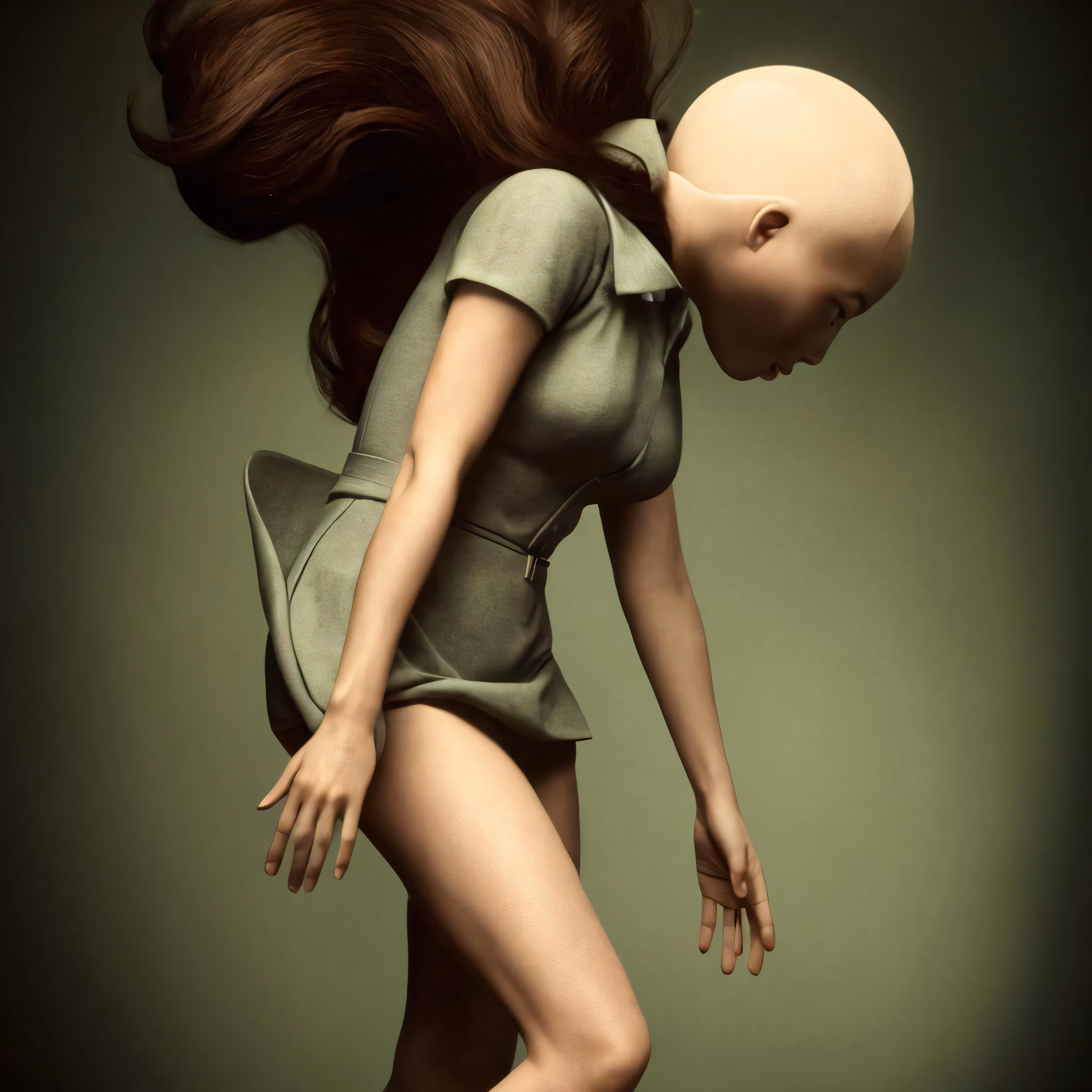 High resolution picture, free to use, a 3d image of a girl with long hair and without pants