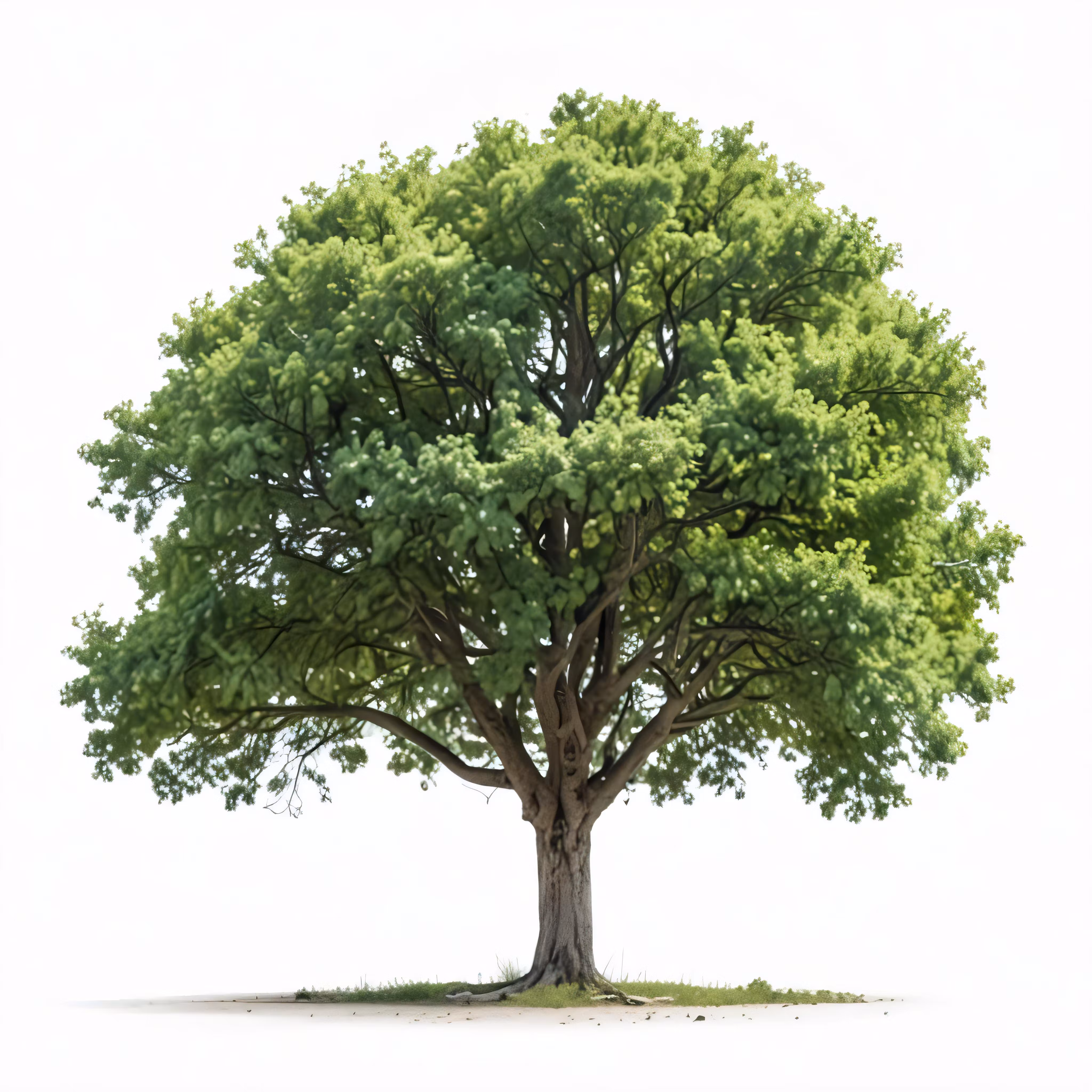 High resolution picture, free to use, a 3d painting of a large tree with green leaves