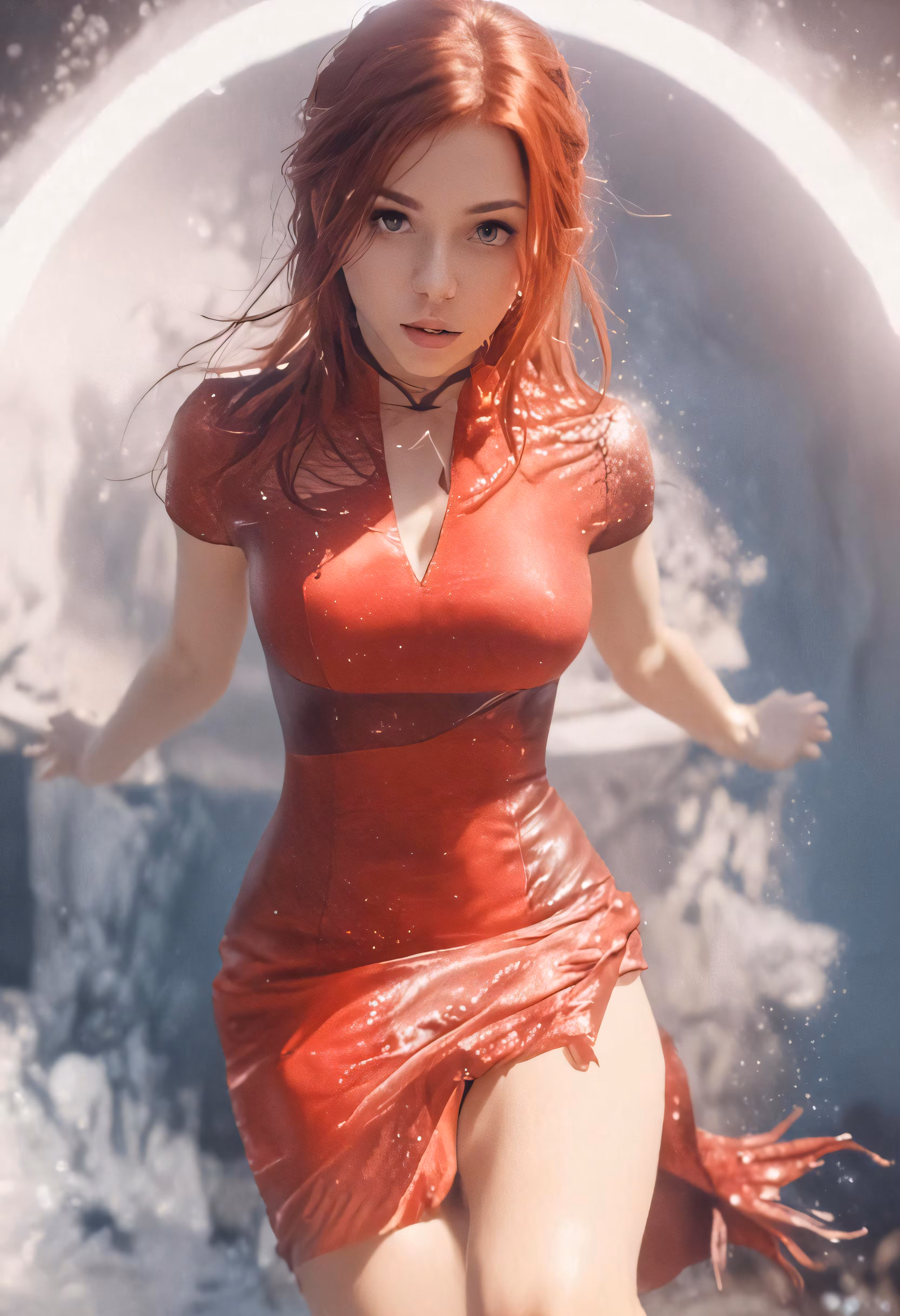 High resolution picture, free to use, a 3d painting of a young woman standing in water
