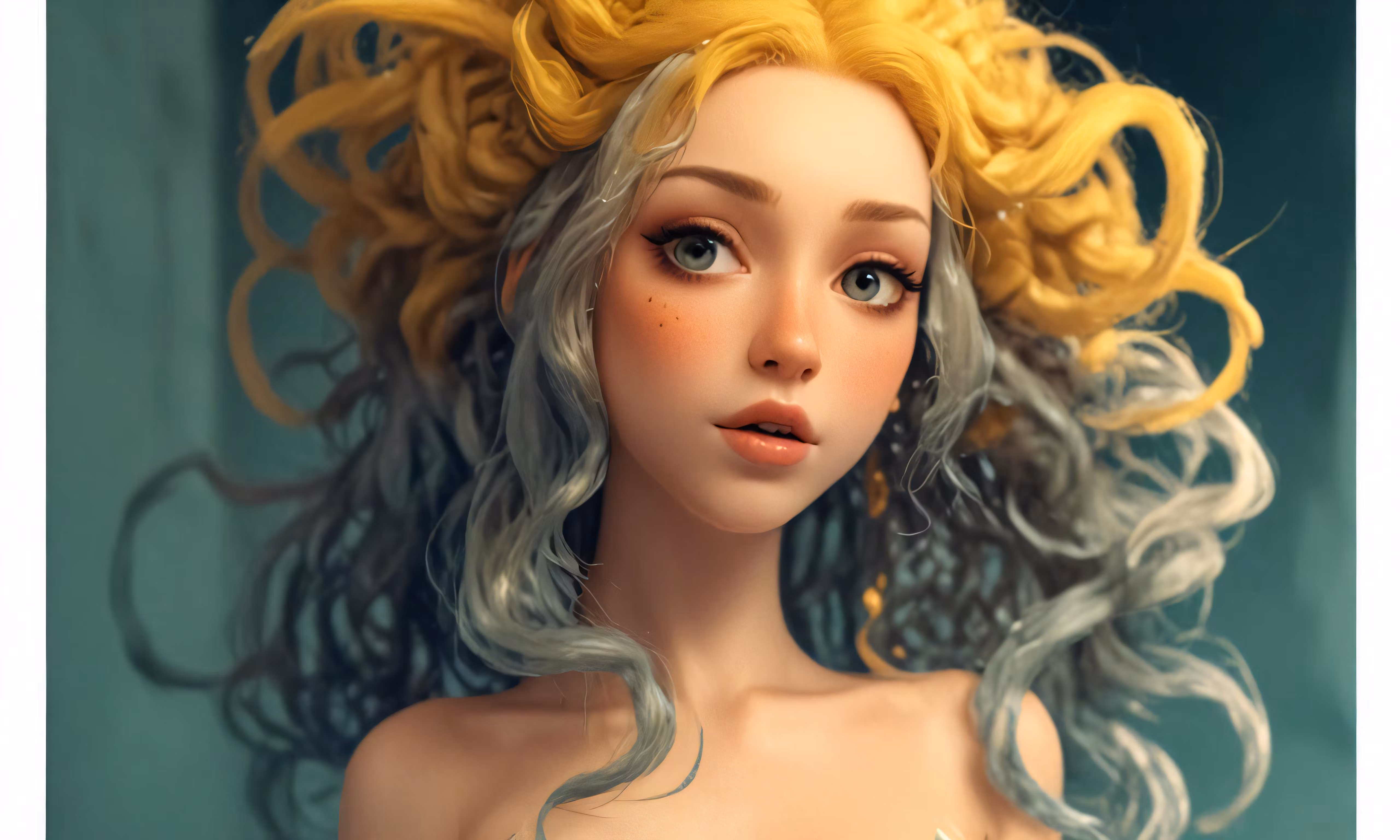 High resolution picture, free to use, a 3d rendering of a doll with curly hair
