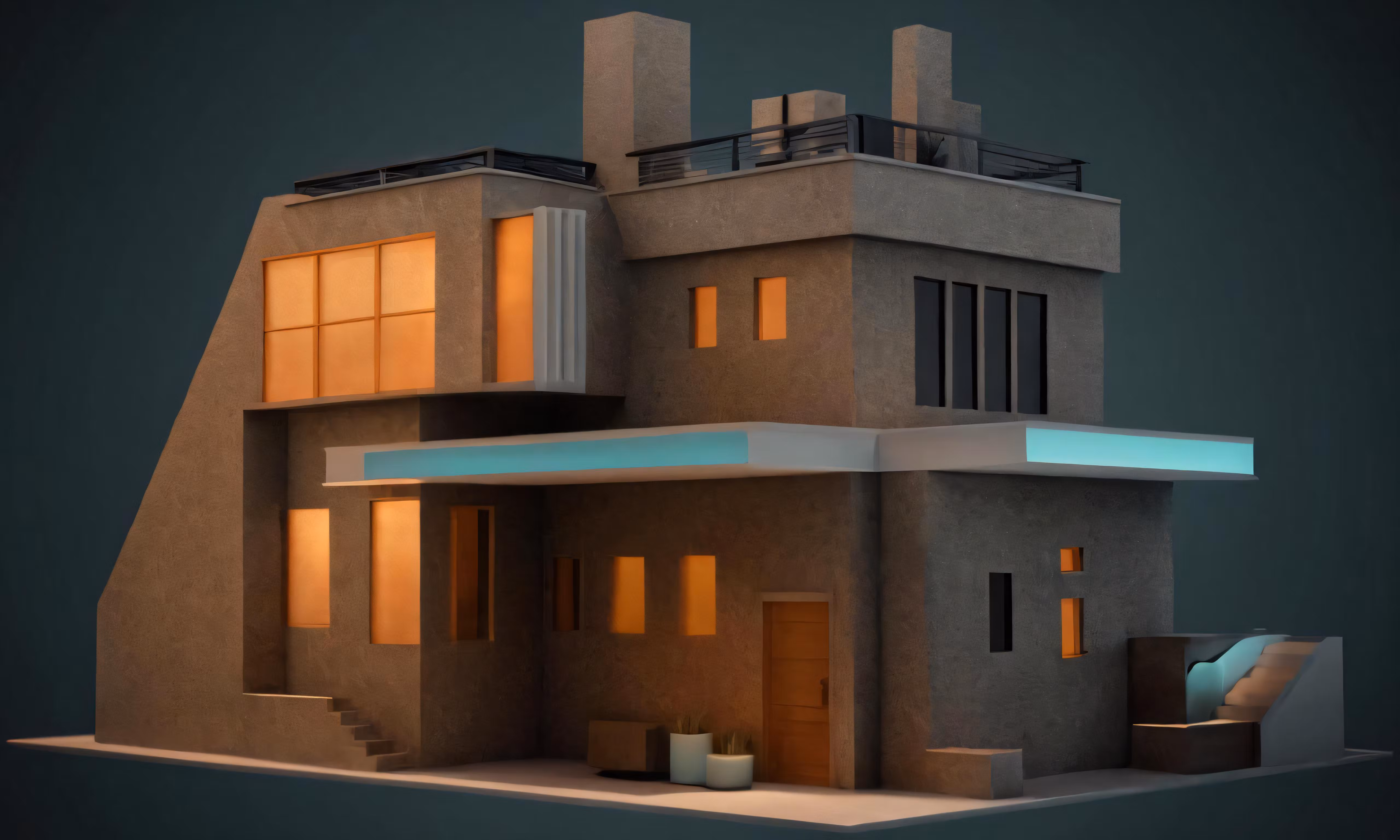 High resolution picture, free to use, a 3d rendering of a two story house with large windows