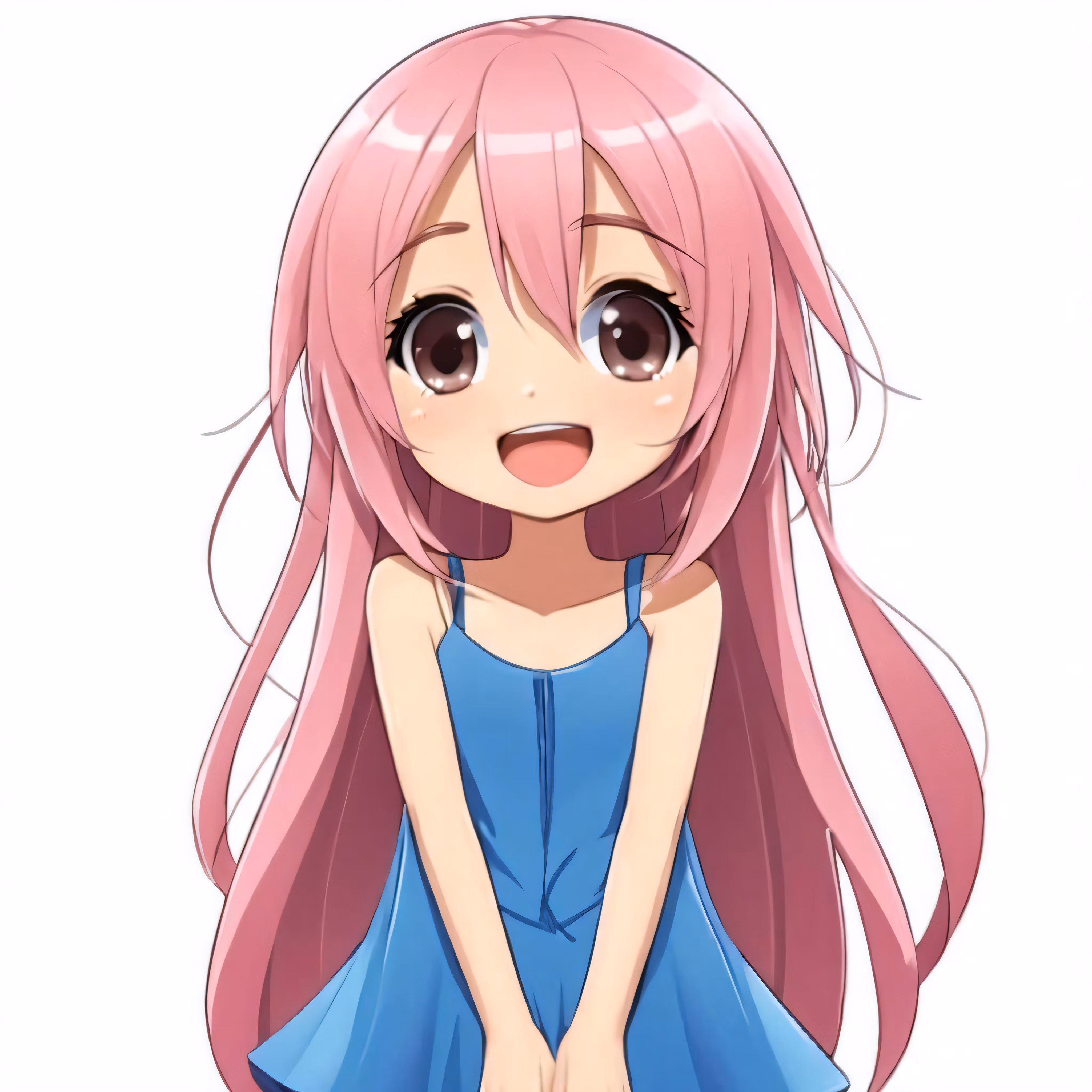 High resolution picture, free to use, a anime character with long pink hair wearing a dress