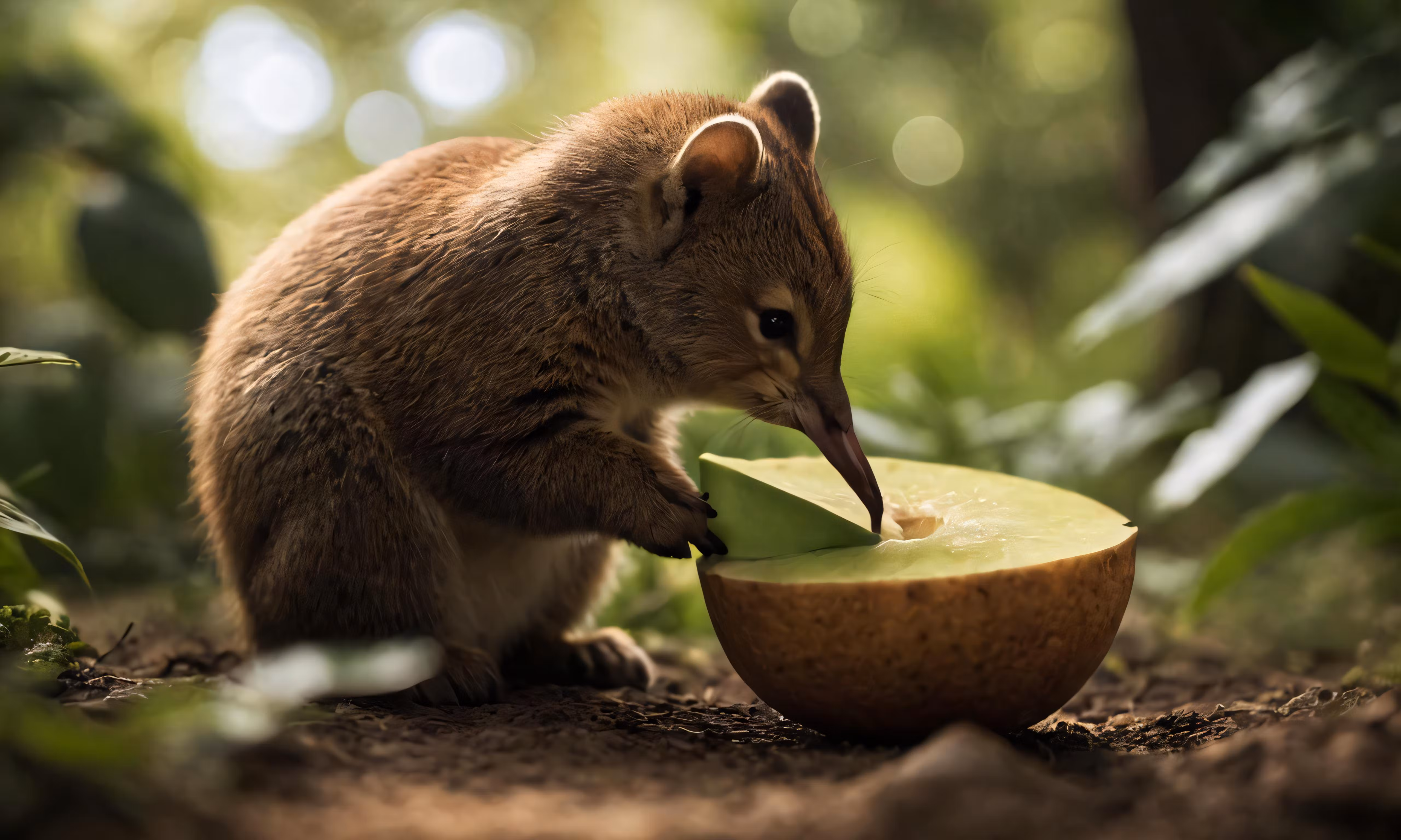 High resolution picture, free to use, a baby antelope eating a piece of fruit from a wooden bowl