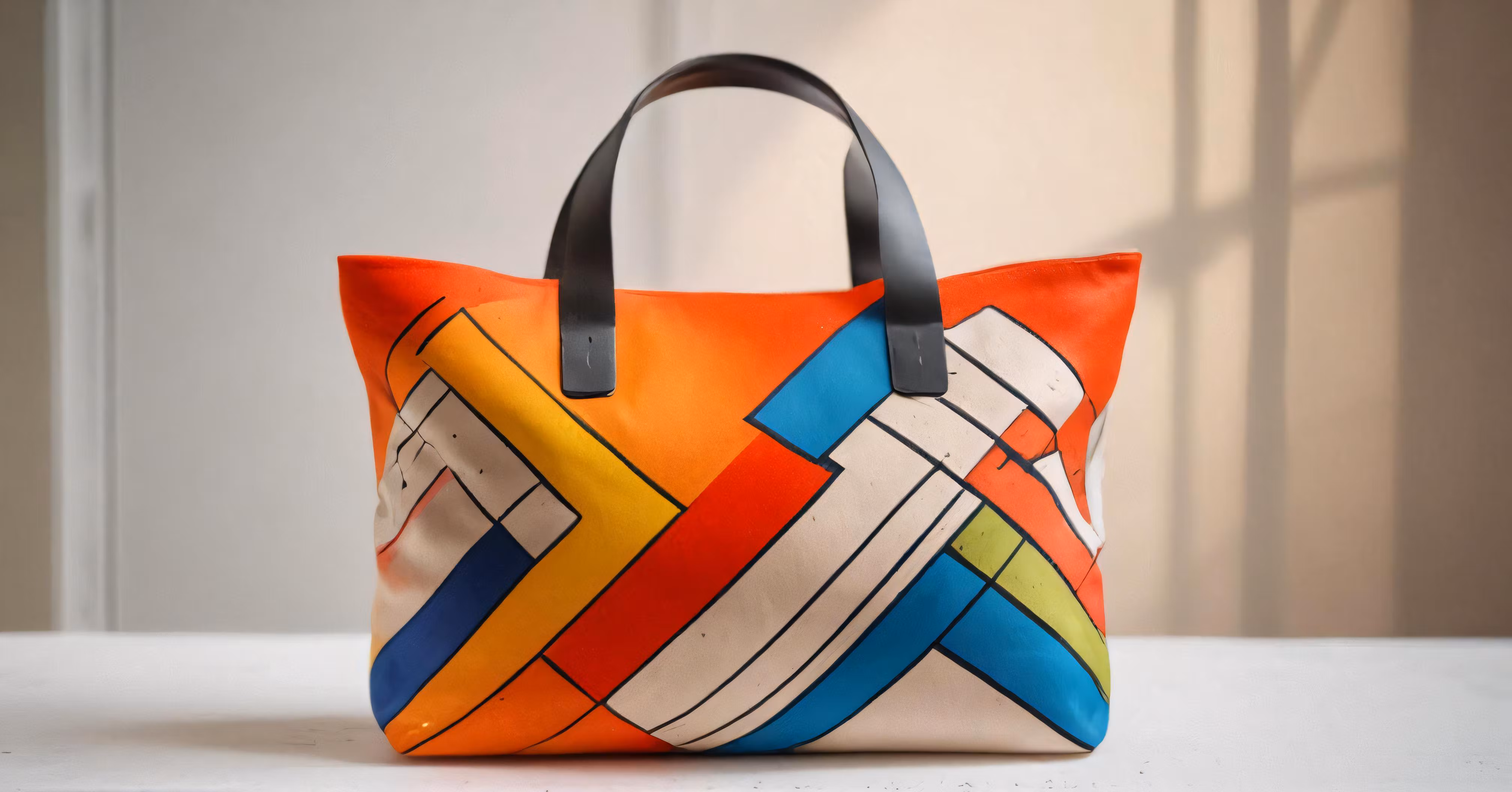 High resolution picture, free to use, a bag is made with geometrics and black straps