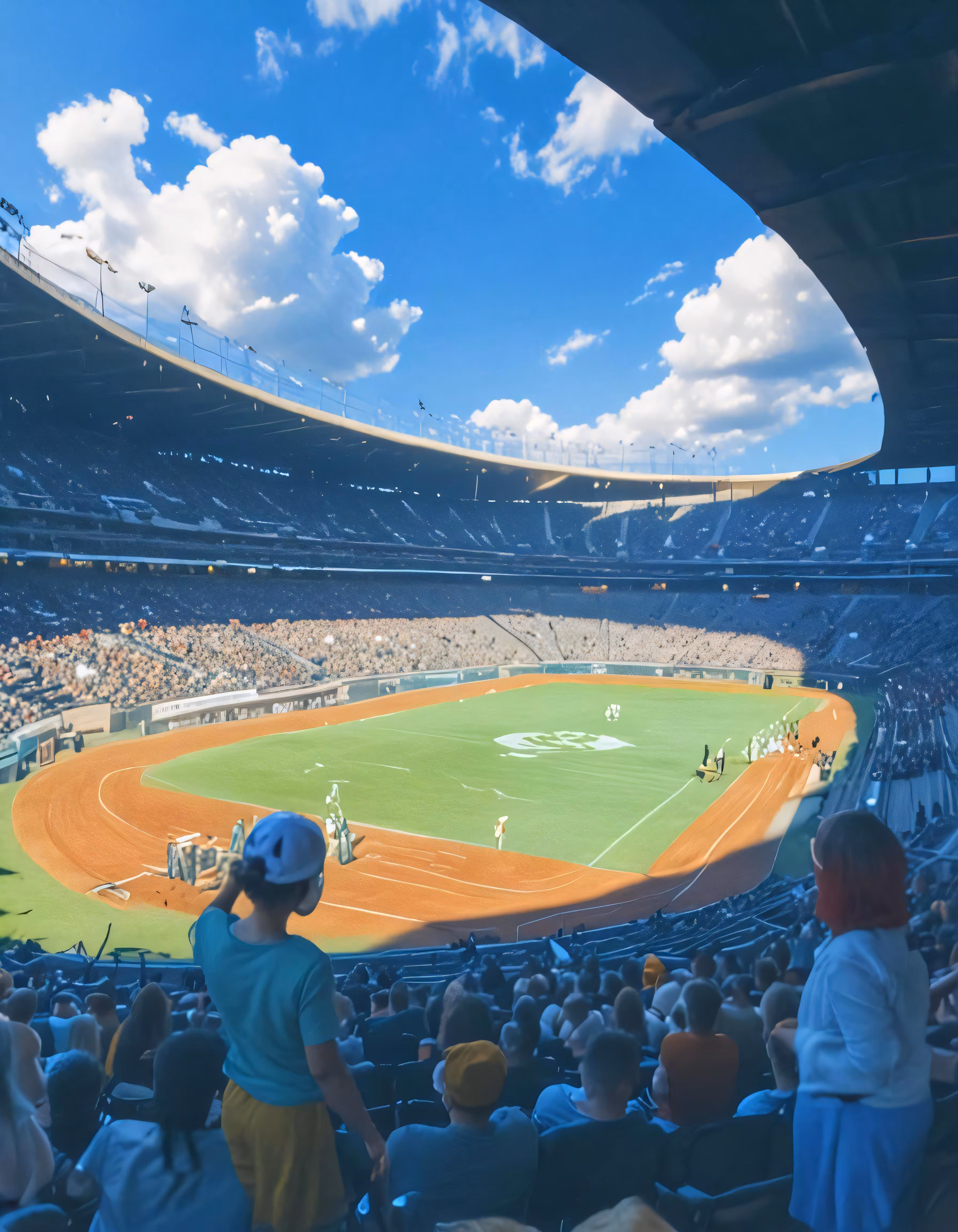 High resolution picture, free to use, a baseball game in progress as many people watch