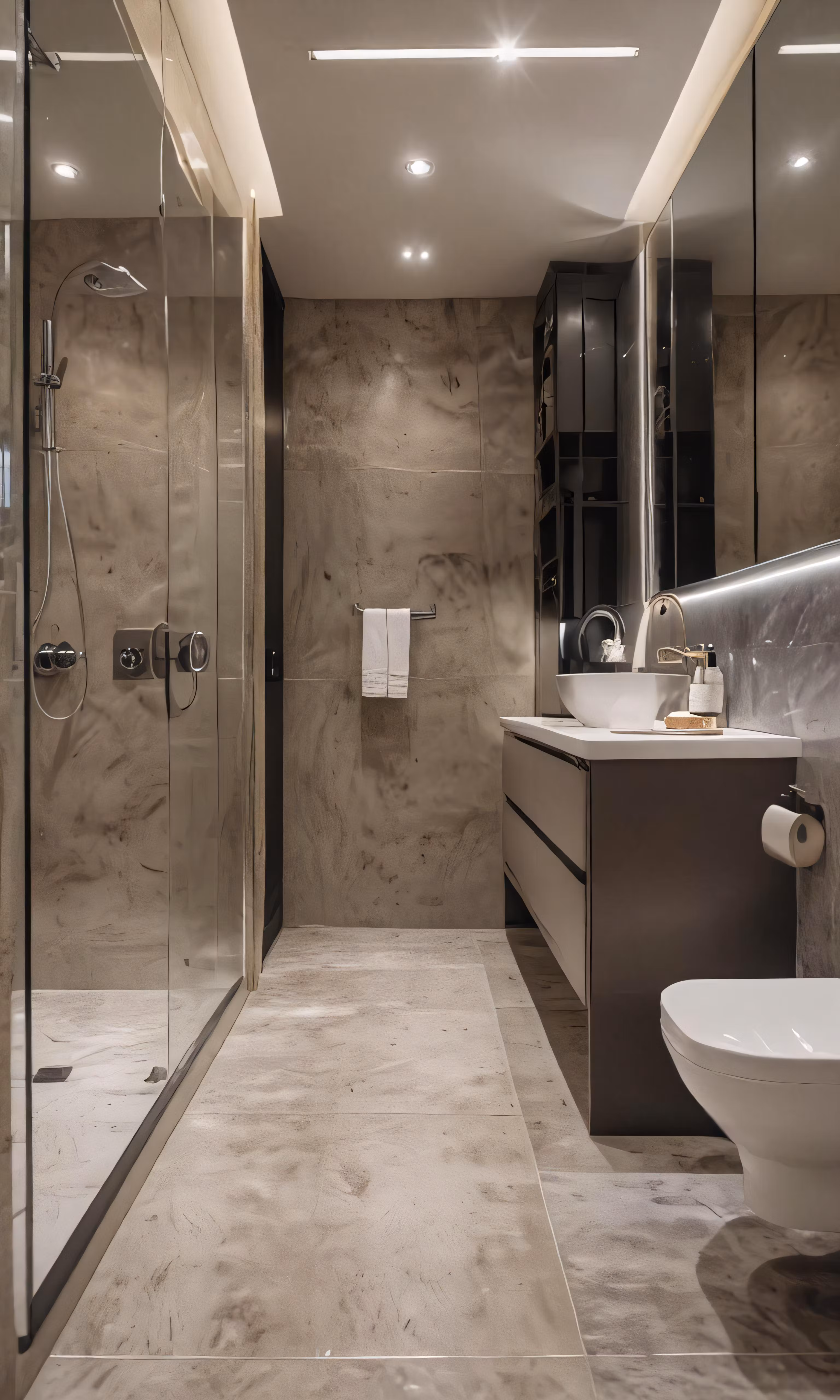 High resolution picture, free to use, a bathroom with a sink and tub next to a stand alone shower