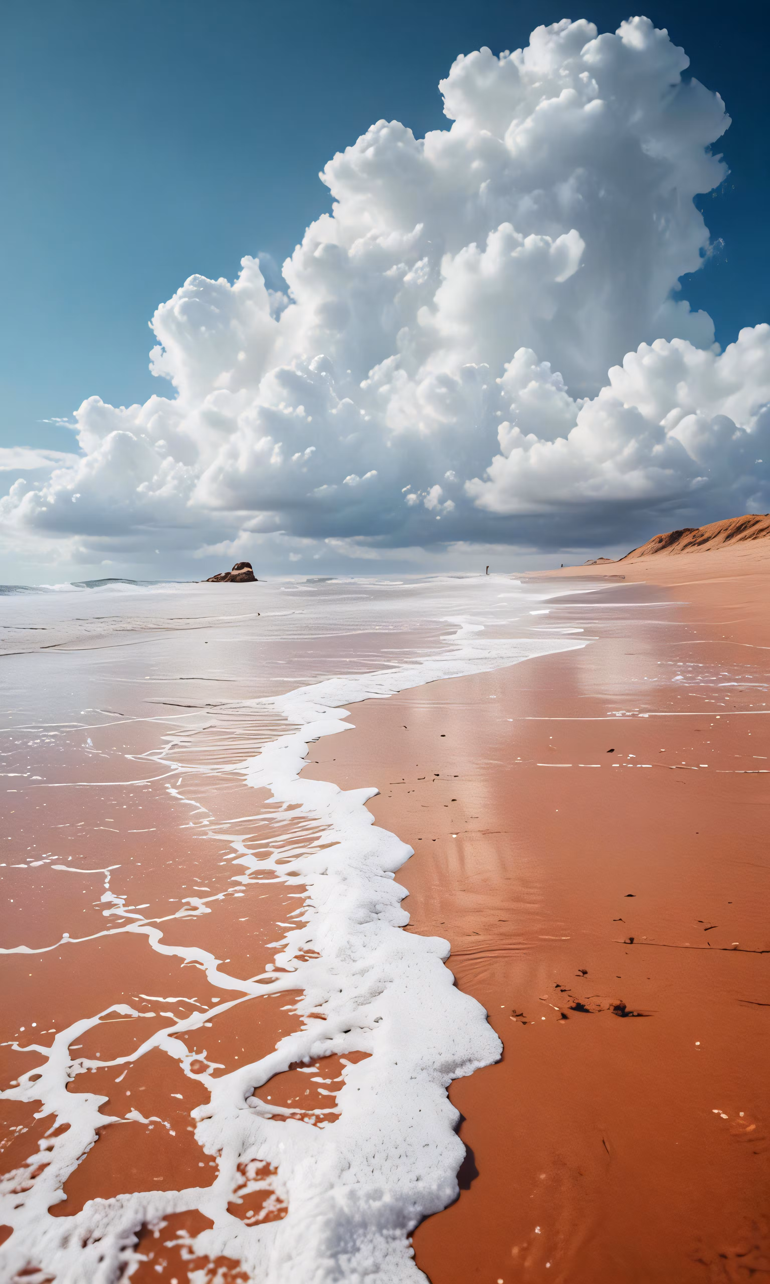 High resolution picture, free to use, a beach with foamy waters and white clouds