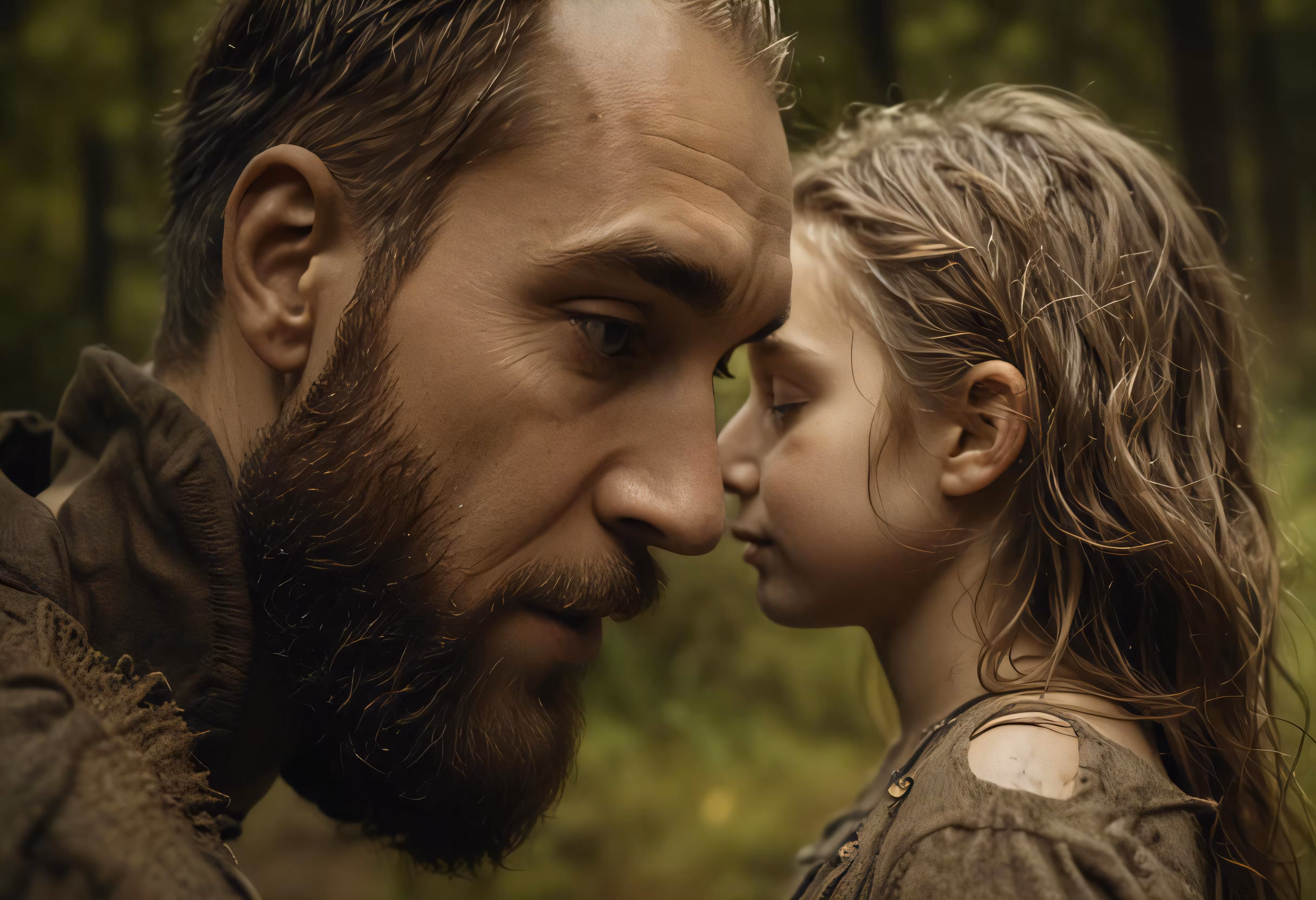 High resolution picture, free to use, a bearded man with a beard kissing a small girl