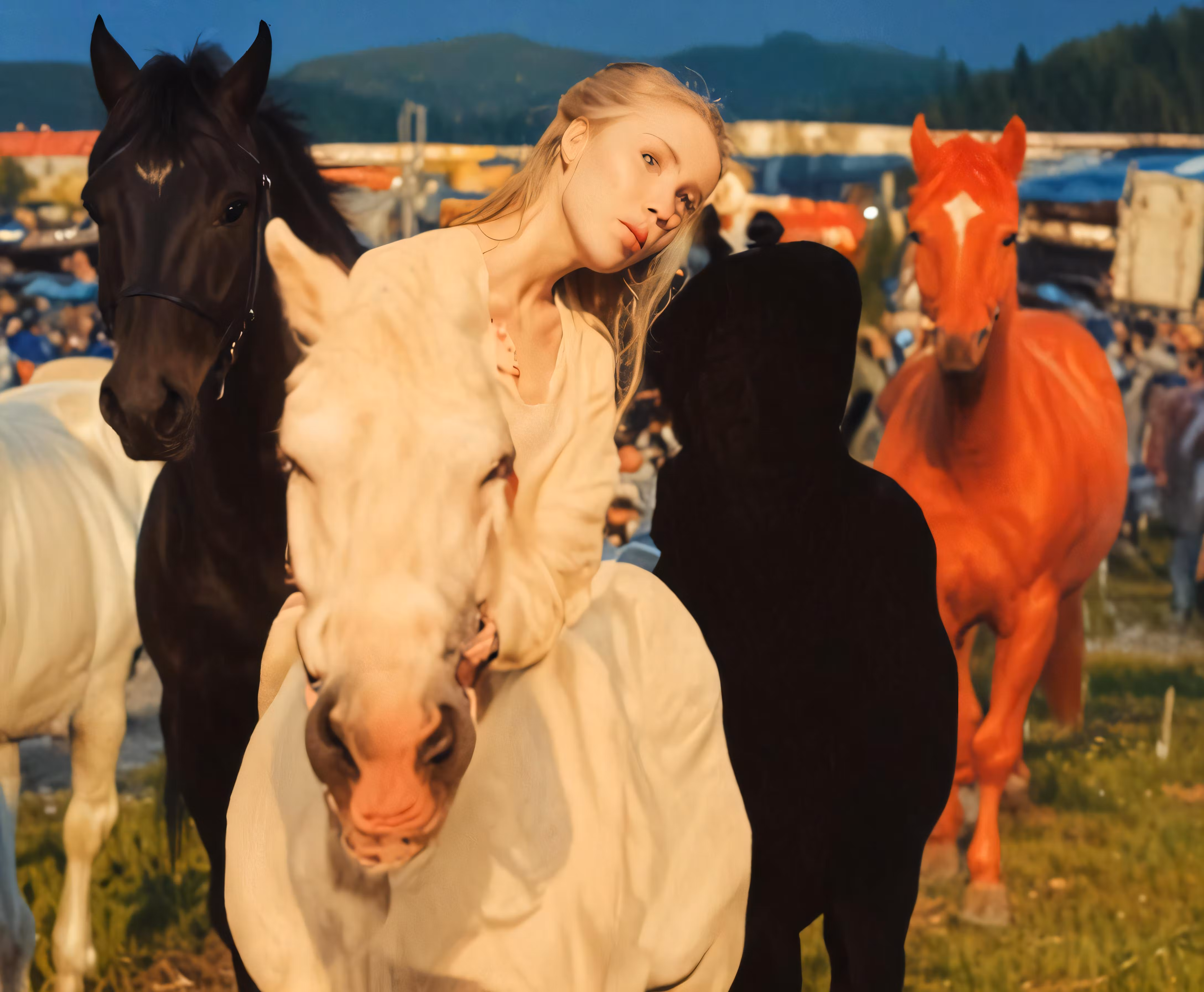 High resolution picture, free to use, a beautiful blonde riding on top of a horse