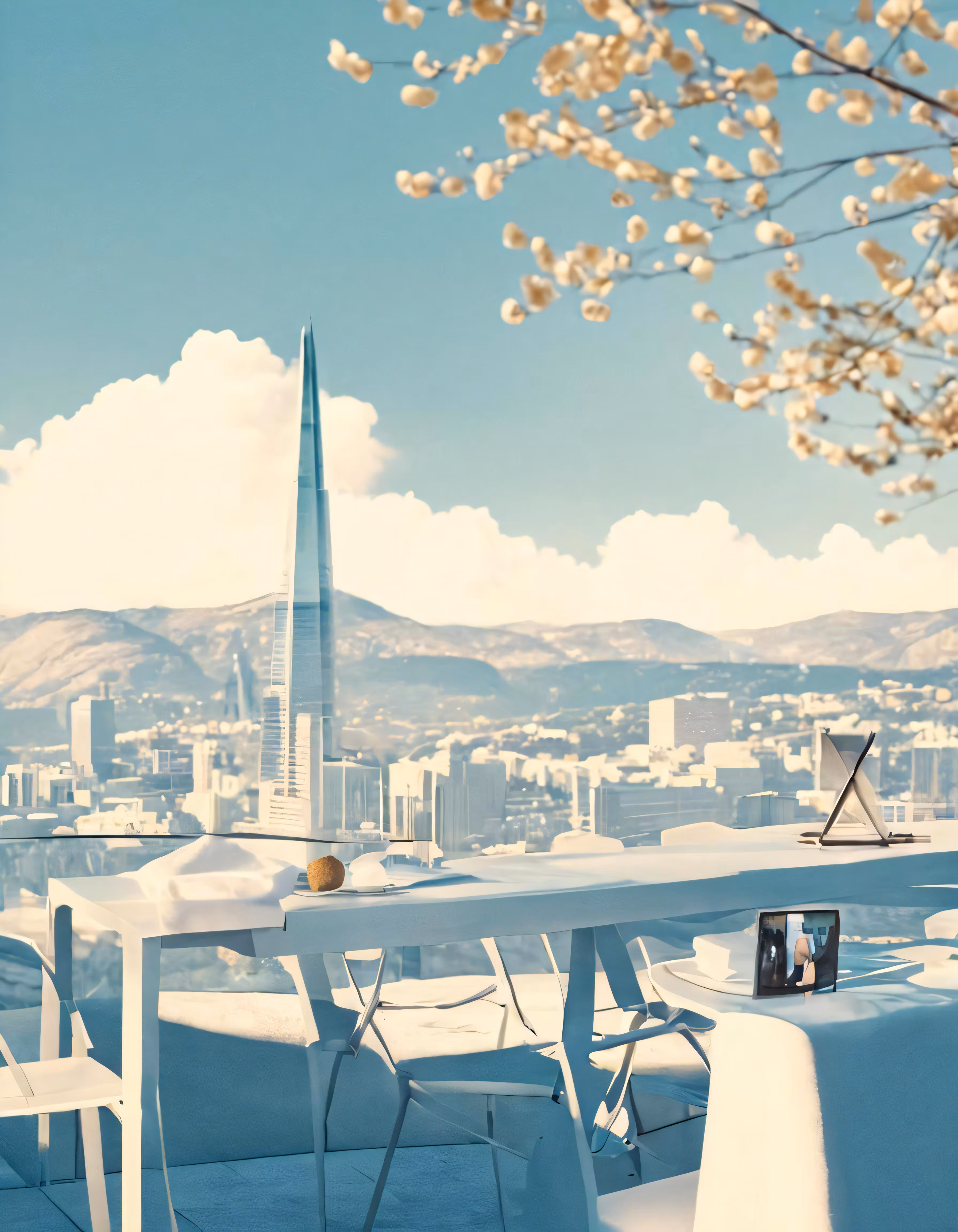High resolution picture, free to use, a beautiful dining area with mountain in the distance