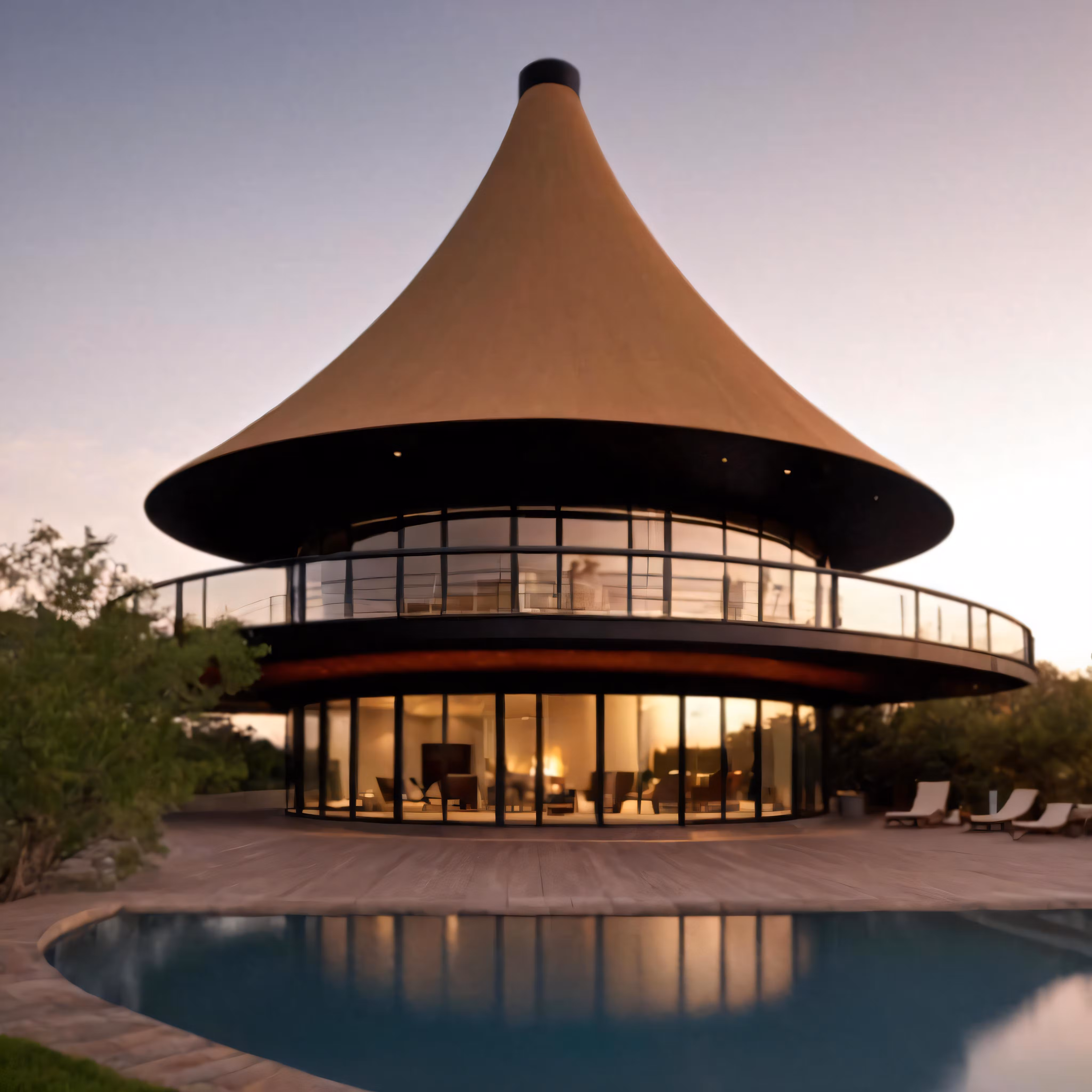 High resolution picture, free to use, a beautiful house with a pool and a gazebo