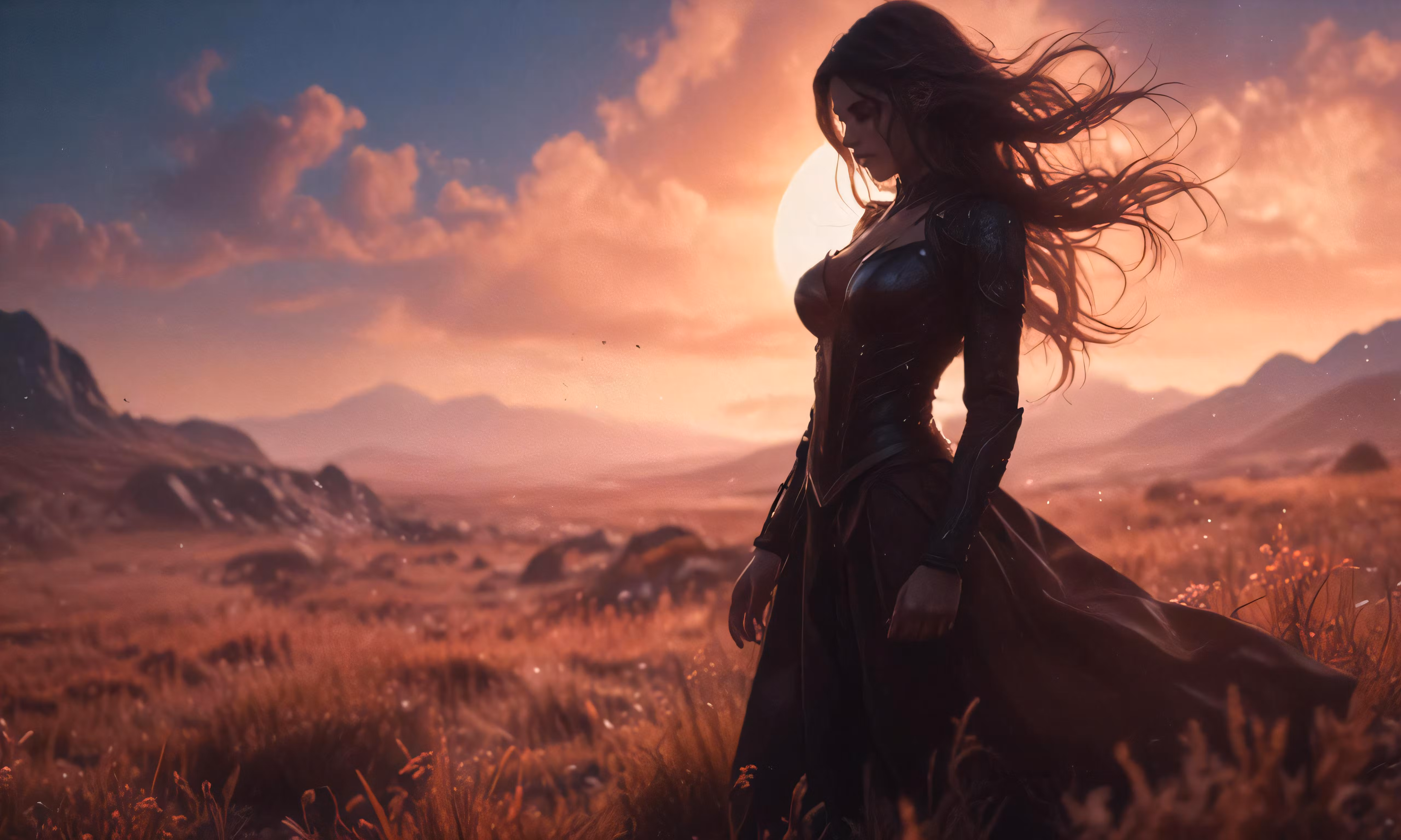 High resolution picture, free to use, a beautiful lady is standing in the wild