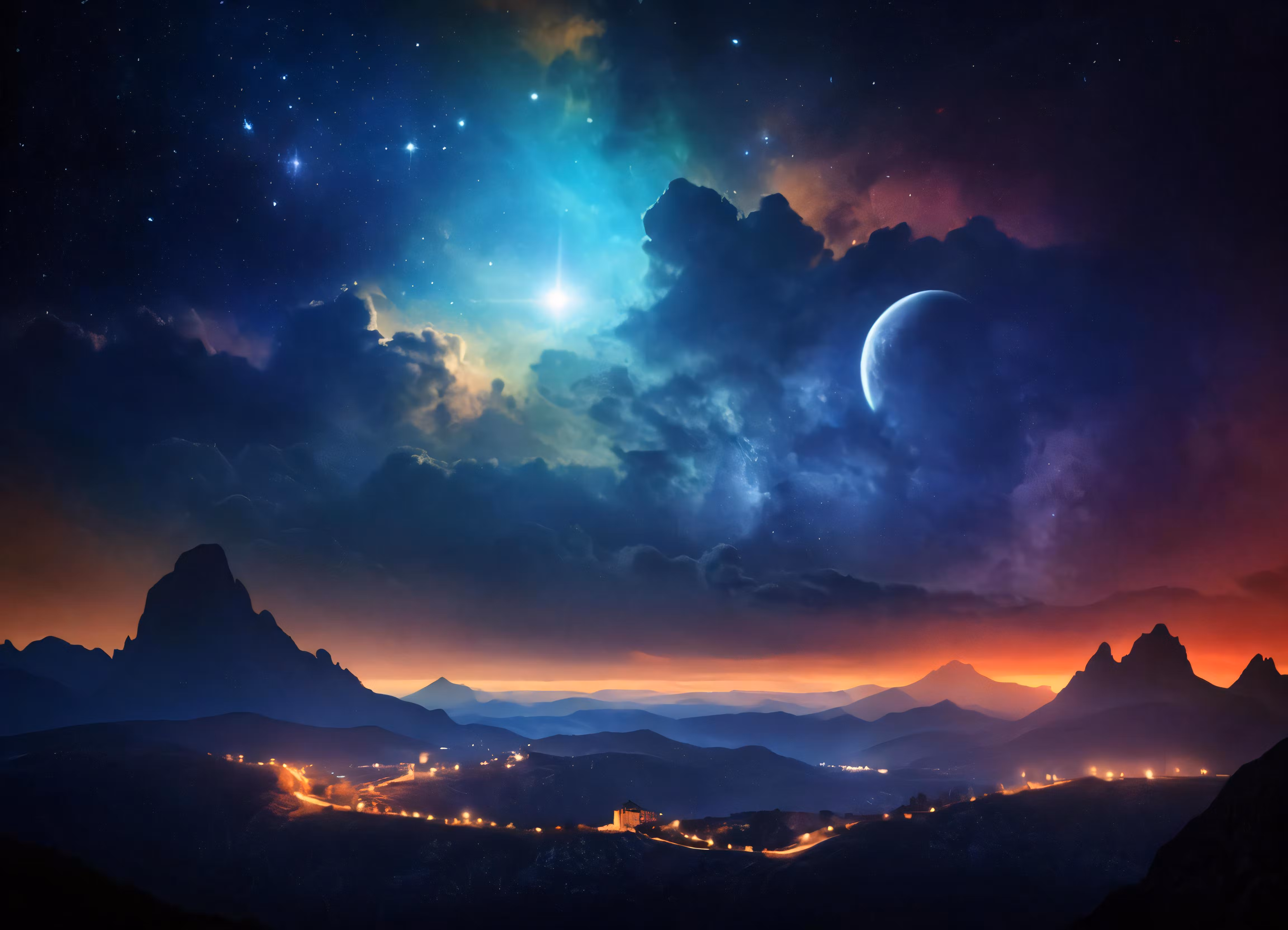 High resolution picture, free to use, a beautiful night scene with mountains and stars