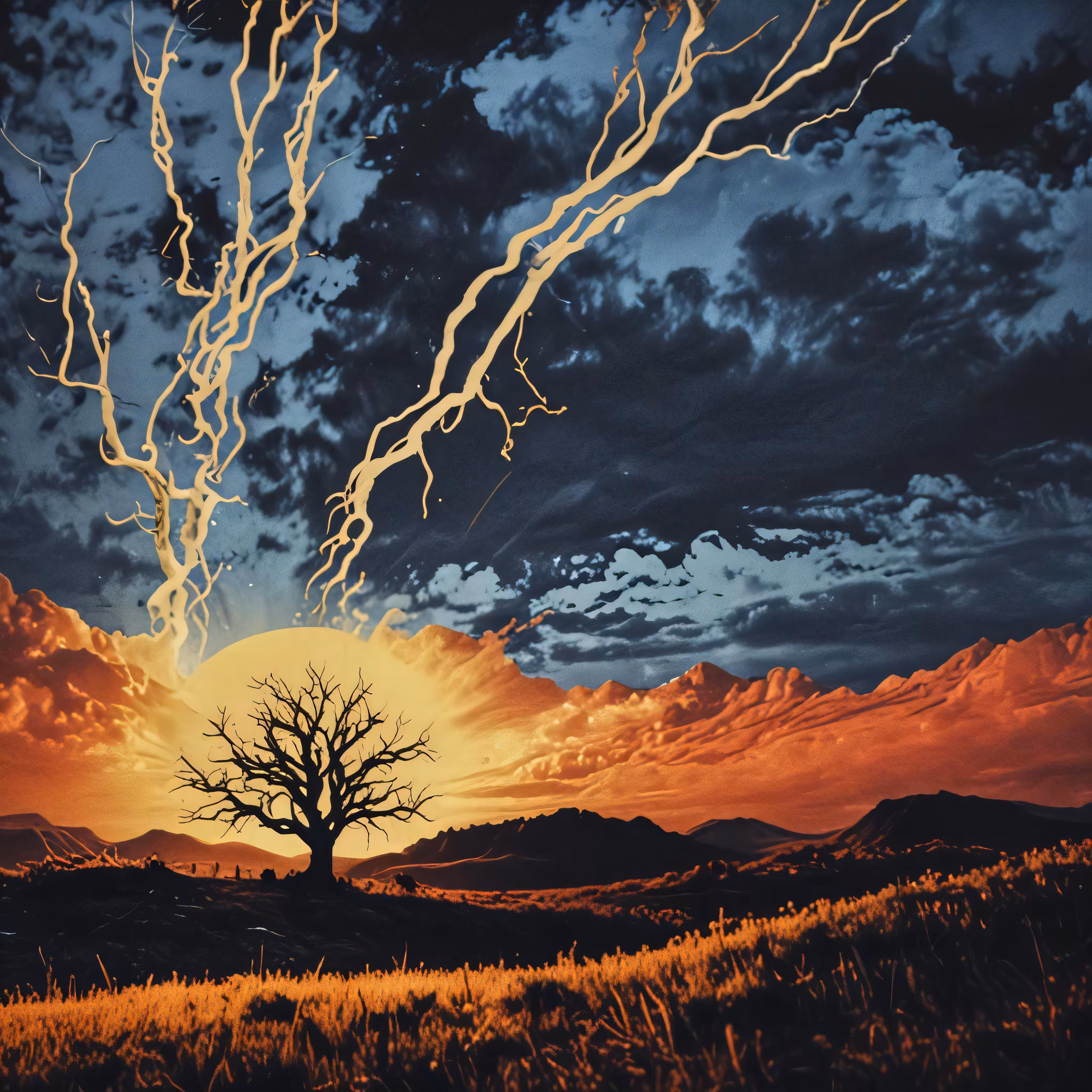 High resolution picture, free to use, a beautiful photo of a tree with lightning streaks