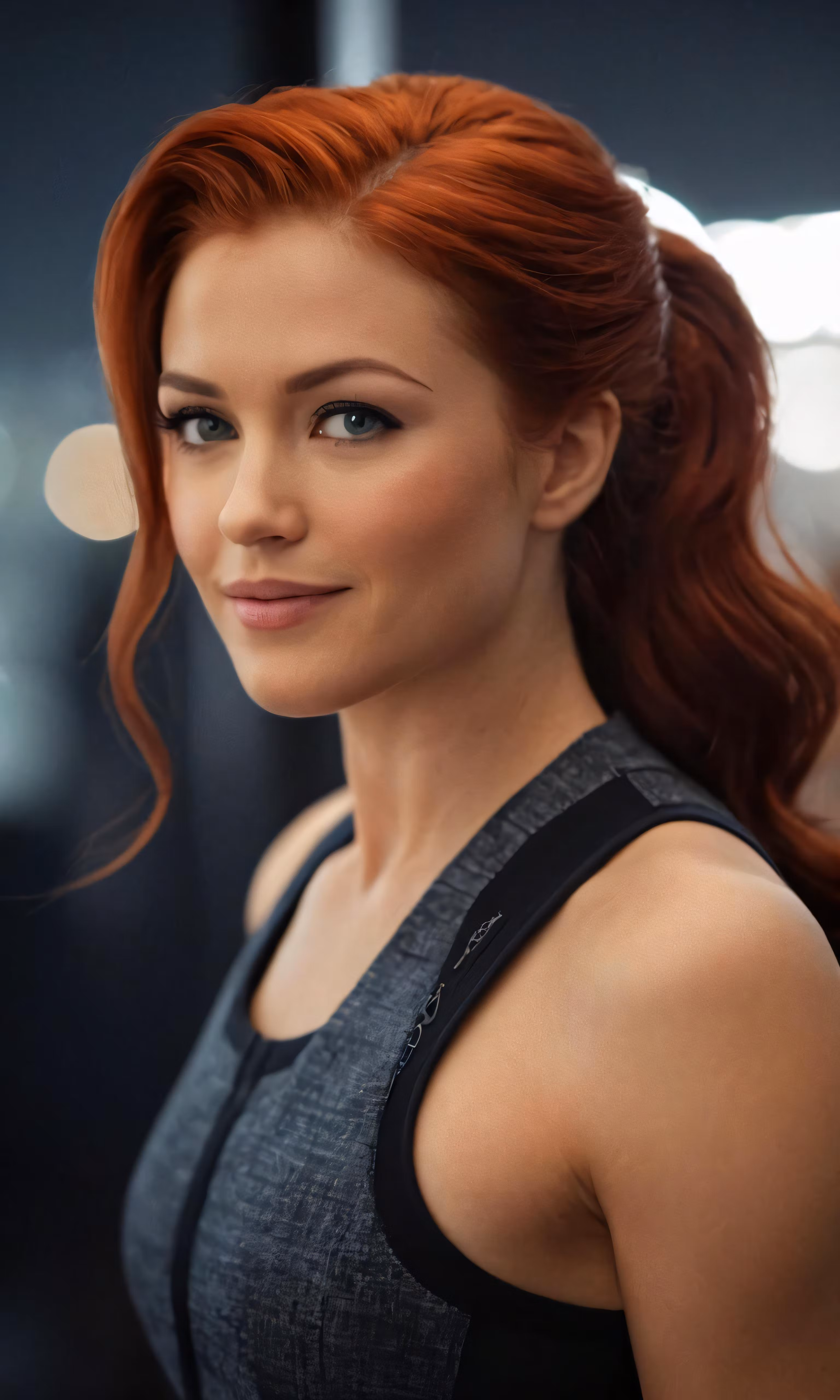 High resolution picture, free to use, a beautiful redhead woman with a large breast posing for a photo
