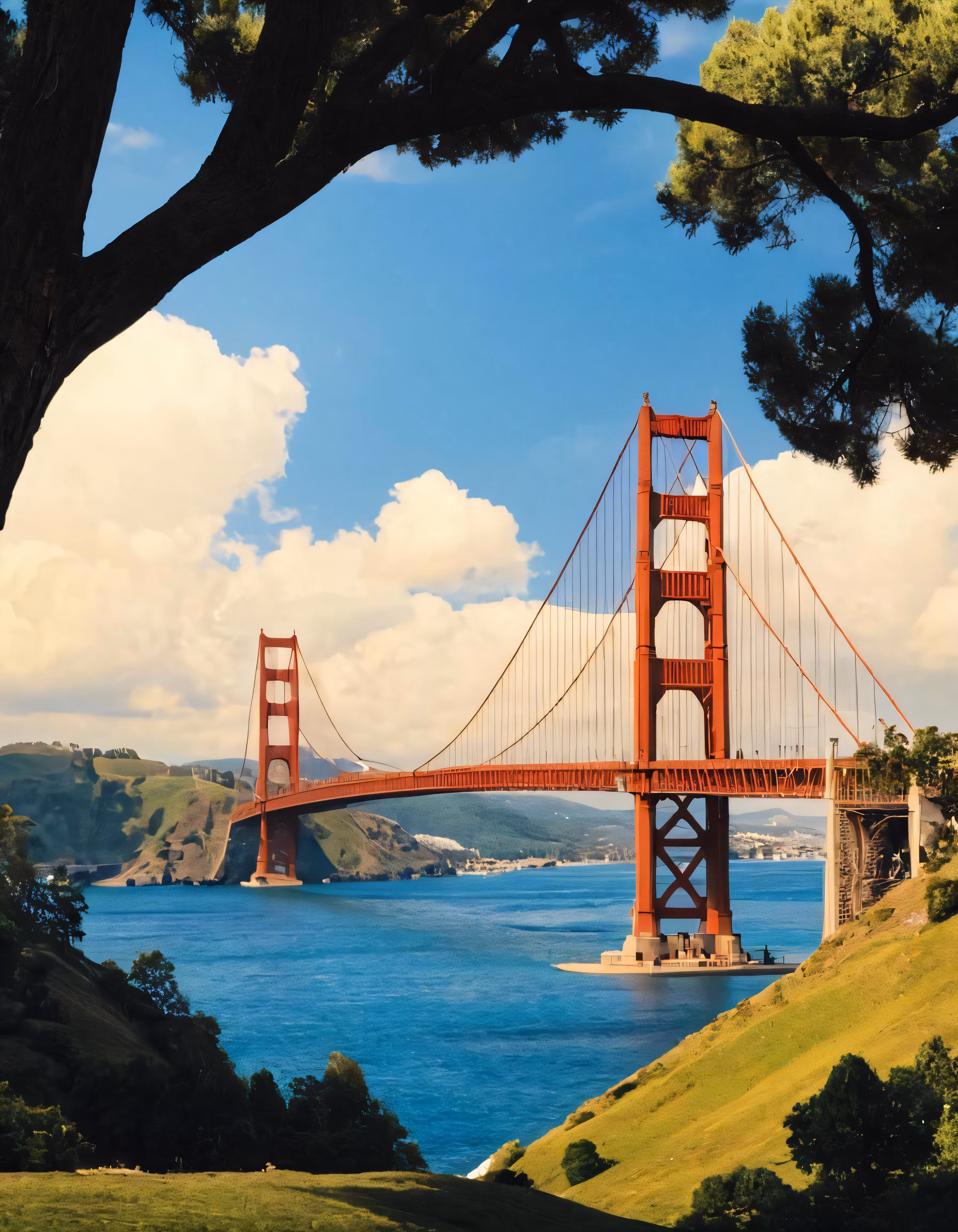High resolution picture, free to use, a beautiful shot of the golden gate bridge taken from the ground