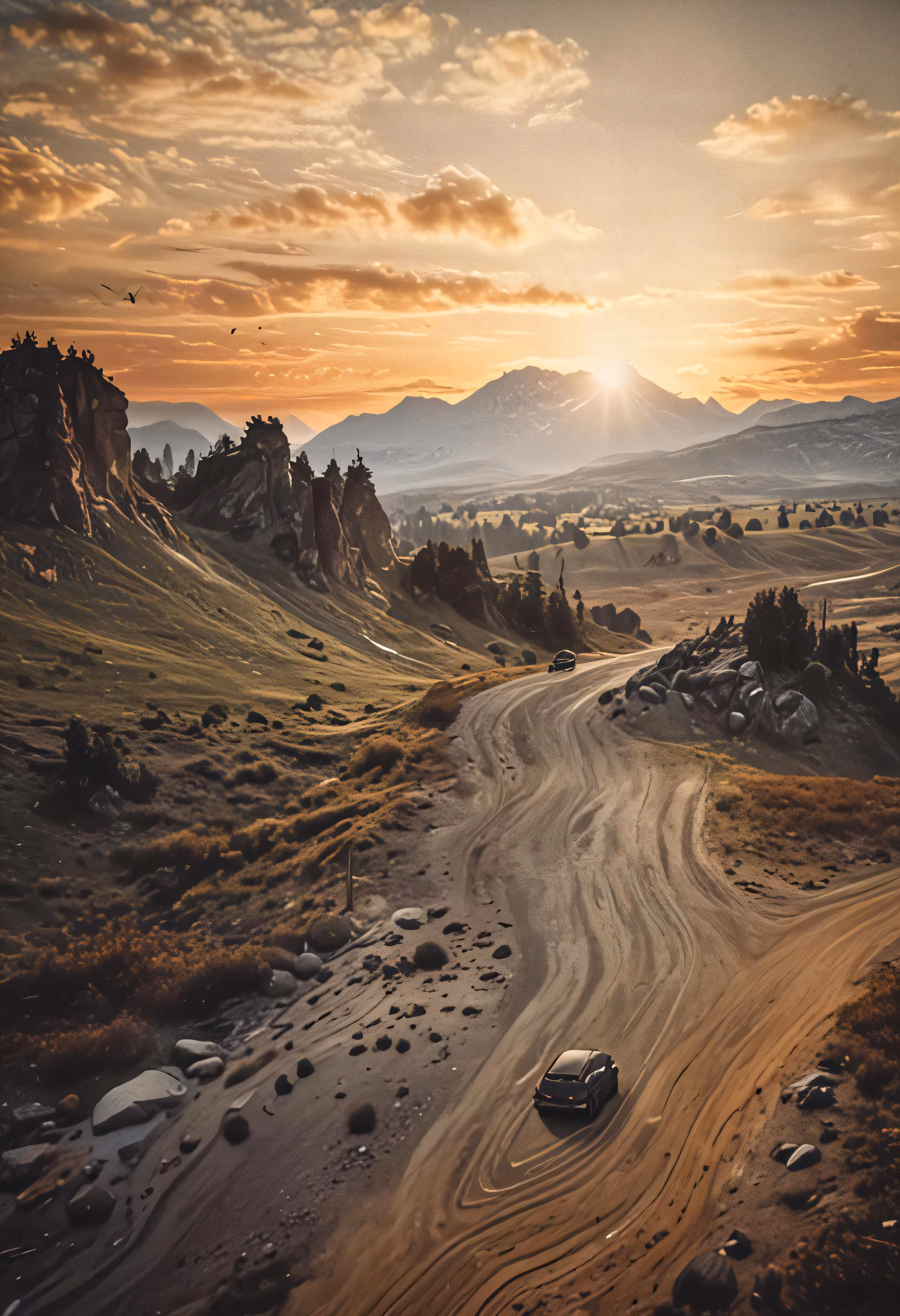 High resolution picture, free to use, a beautiful view of the sun behind some hills