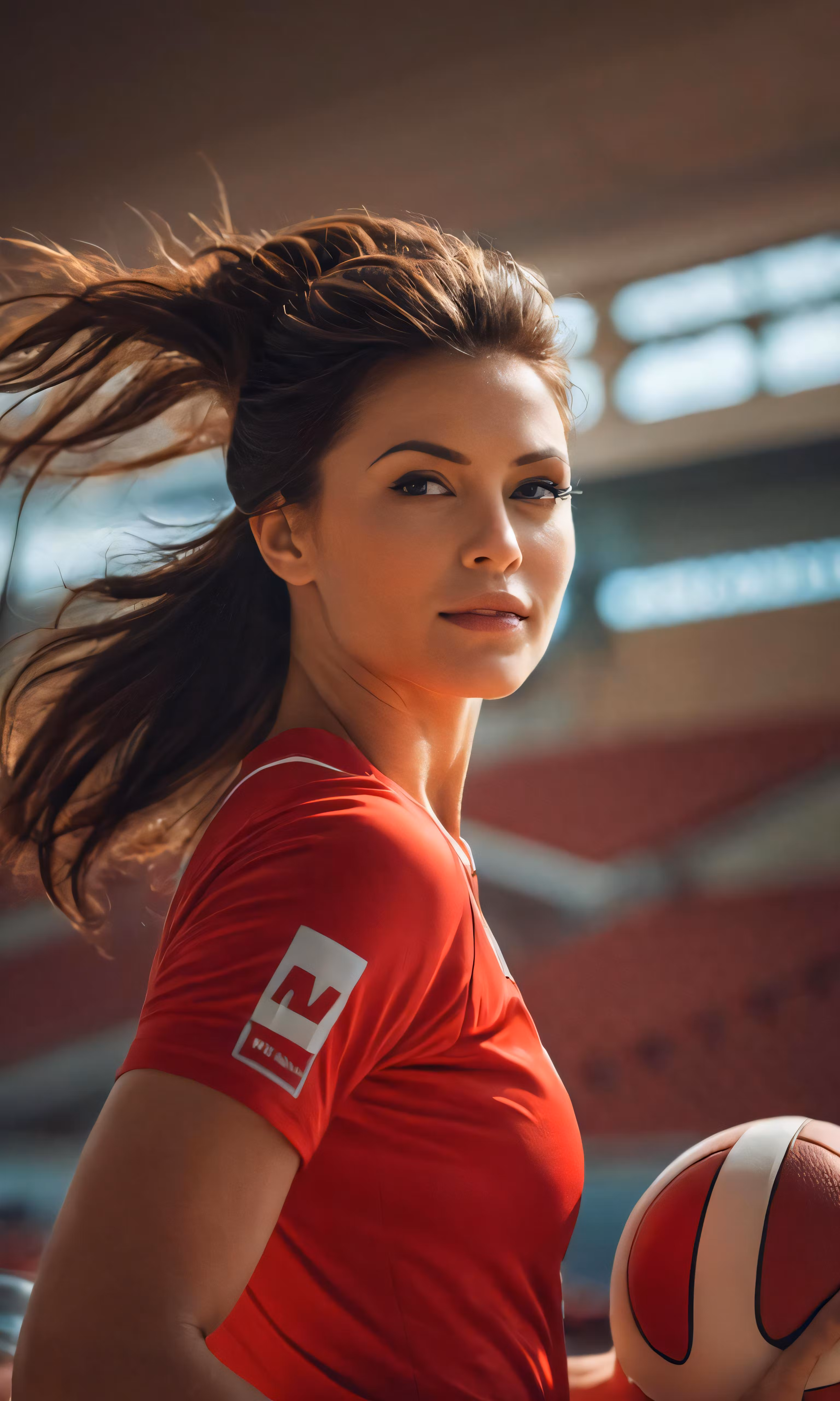 High resolution picture, free to use, a beautiful woman holding a basketball in a gym
