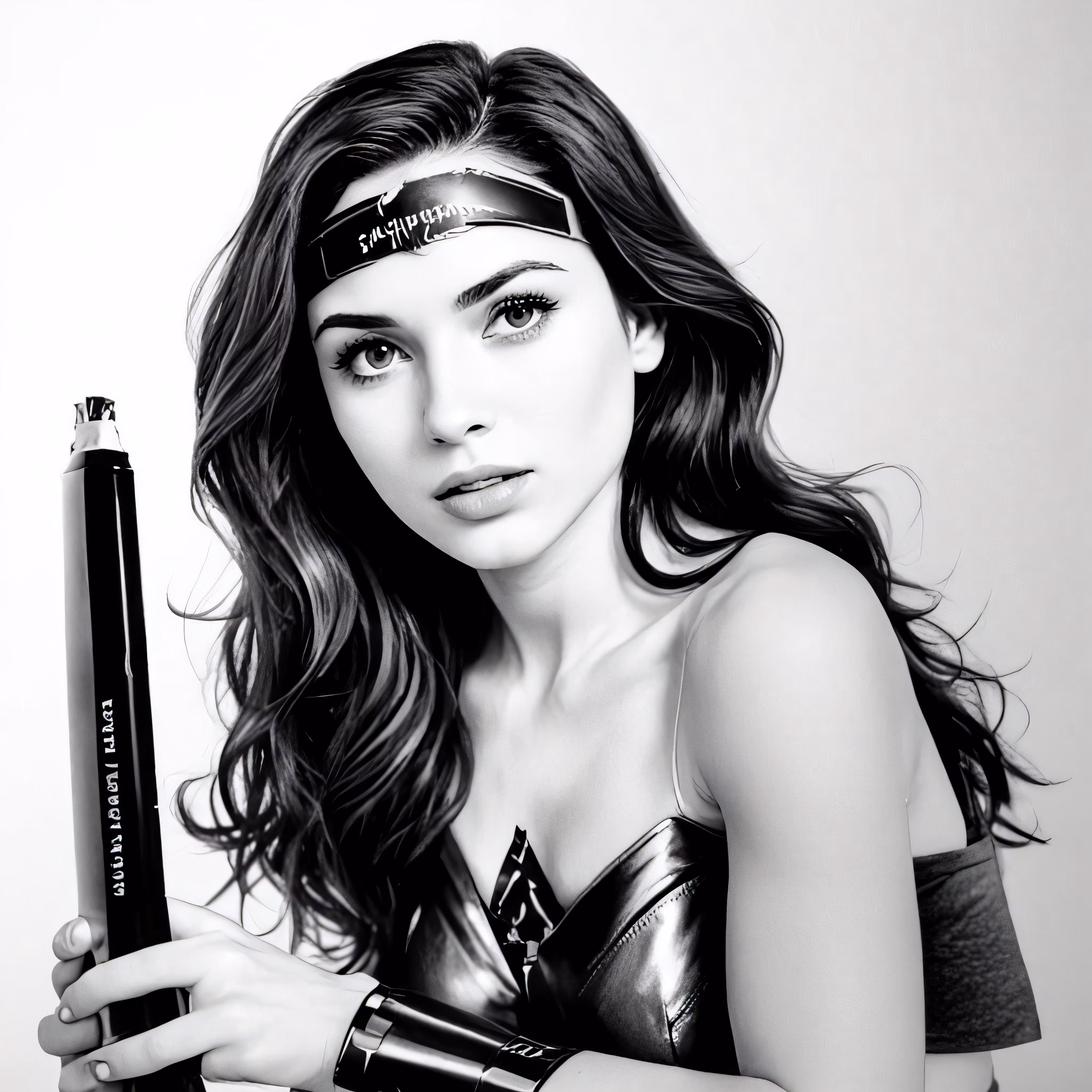 High resolution picture, free to use, a beautiful woman holding a large black pen