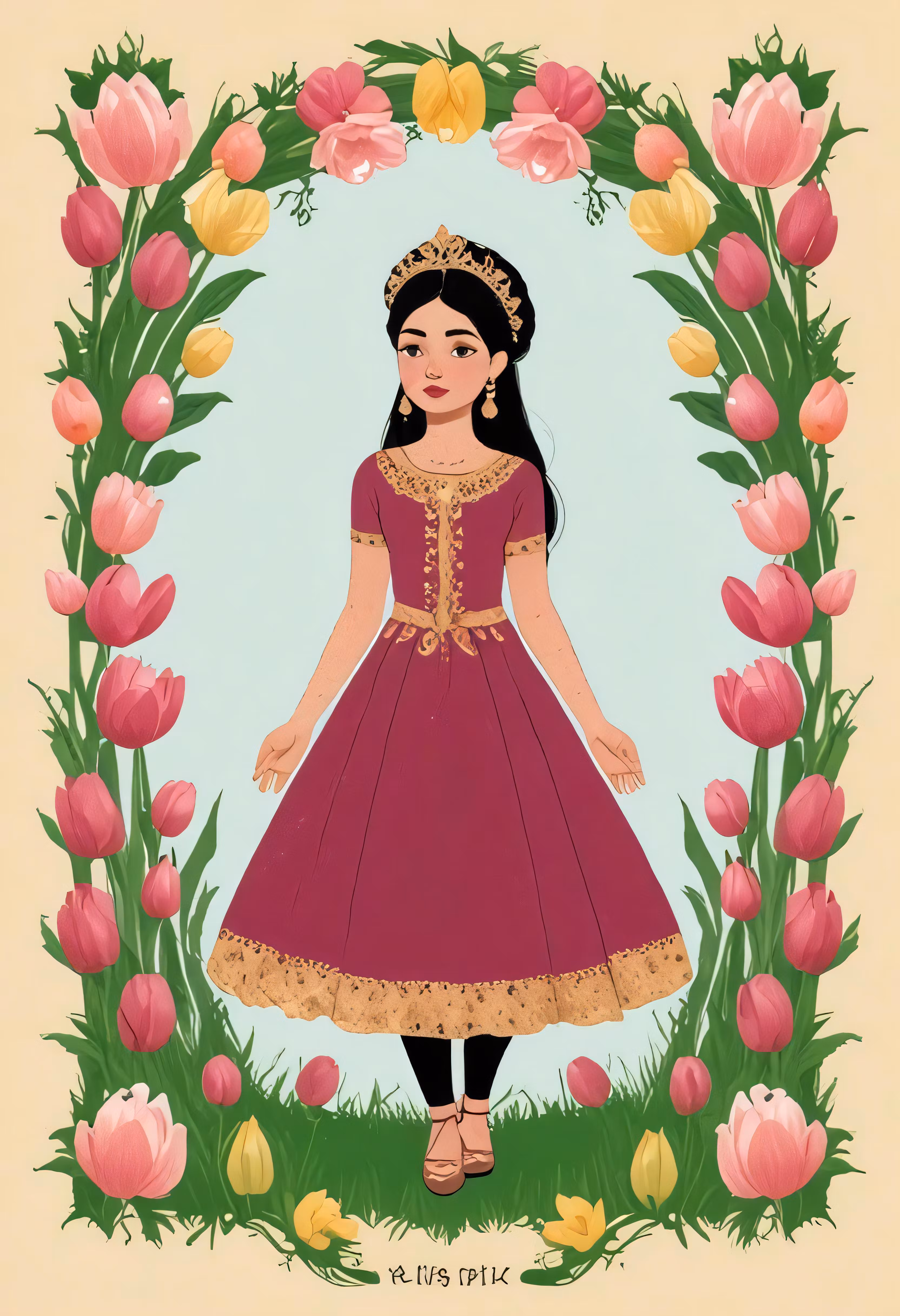 High resolution picture, free to use, a beautiful woman in a purple dress stands under an arch