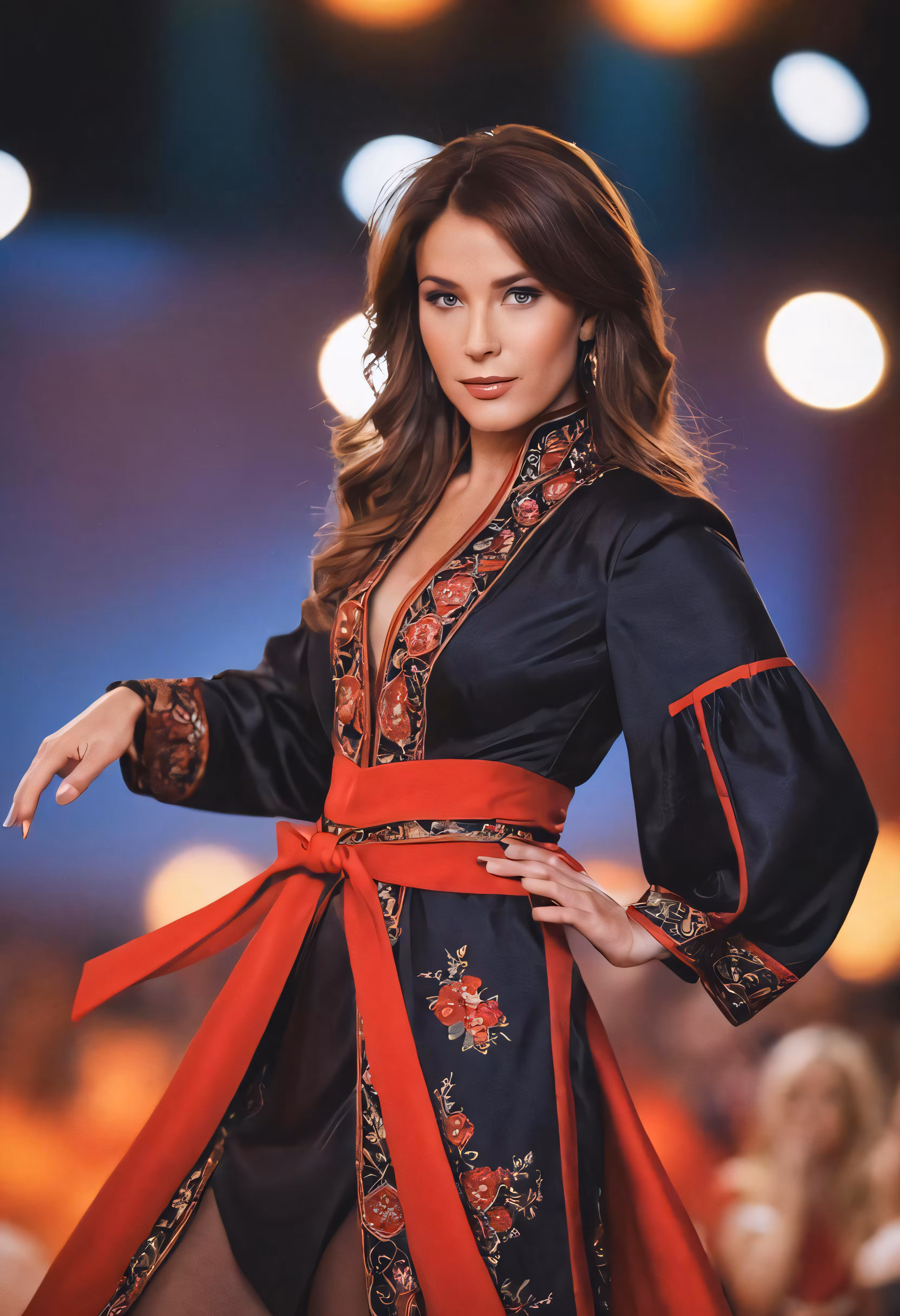 High resolution picture, free to use, a beautiful woman in an asian dress on the runway