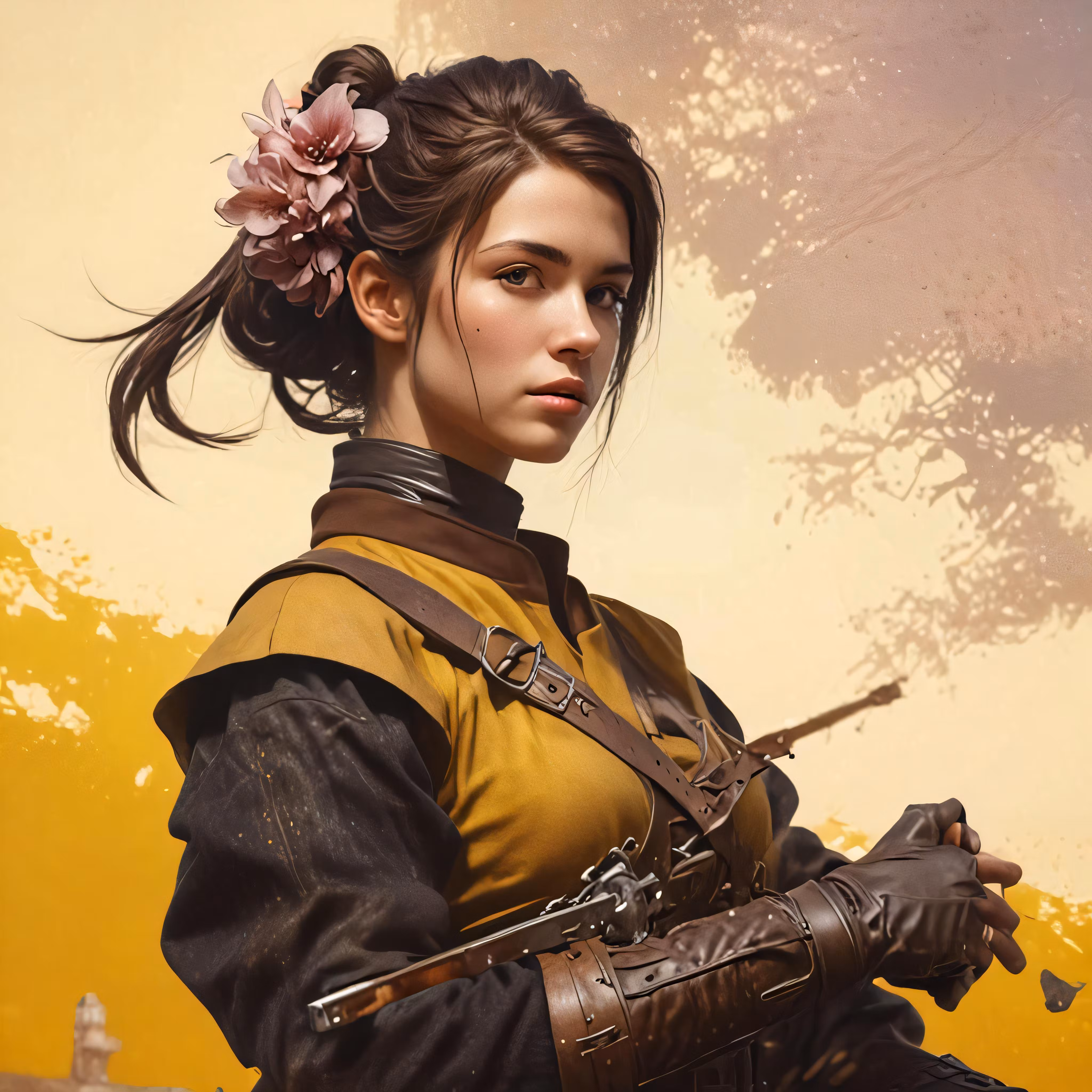 High resolution picture, free to use, a beautiful woman in an old fashion outfit holding a sword