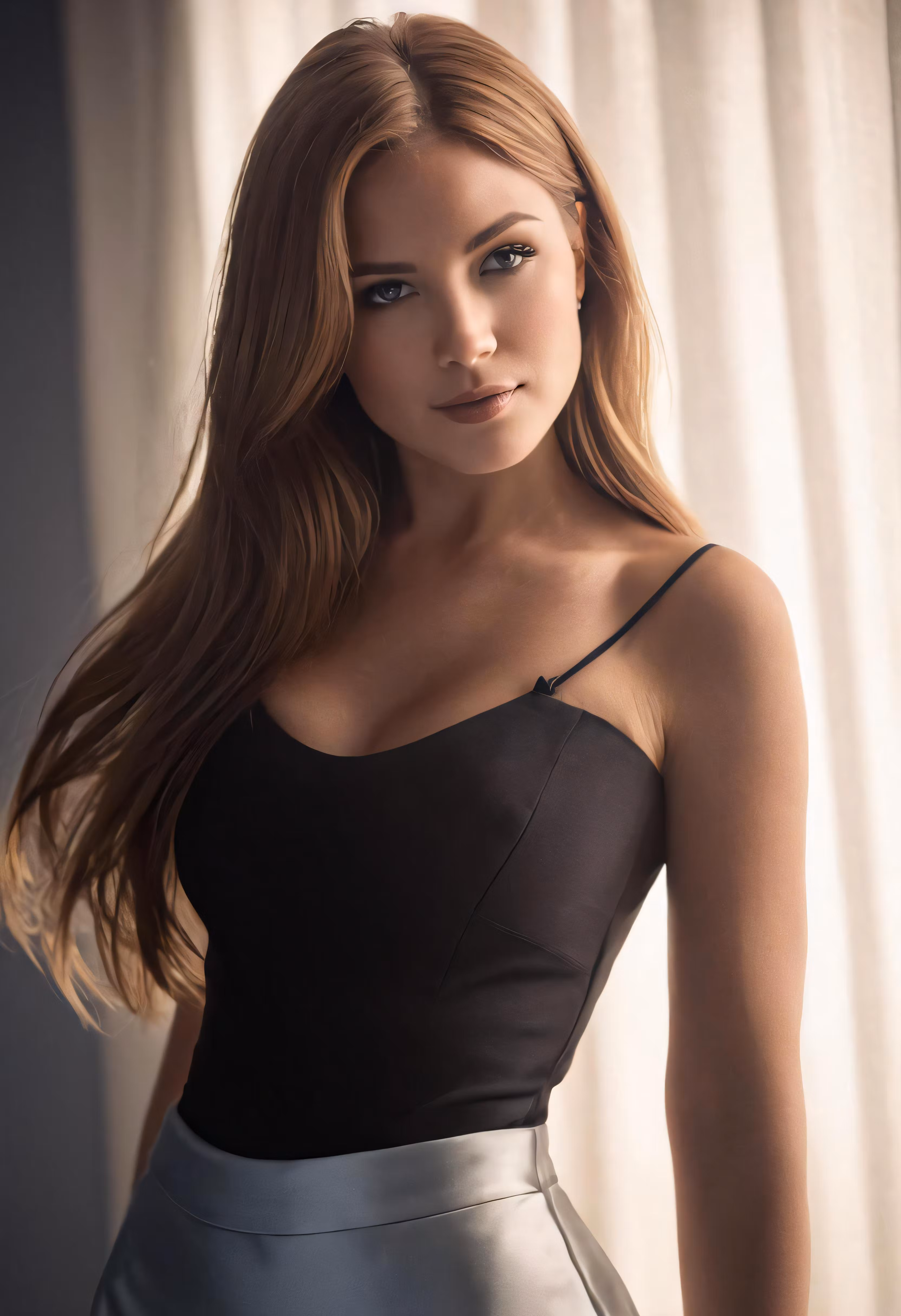 High resolution picture, free to use, a beautiful woman in leather and a haltier top posing for a photo