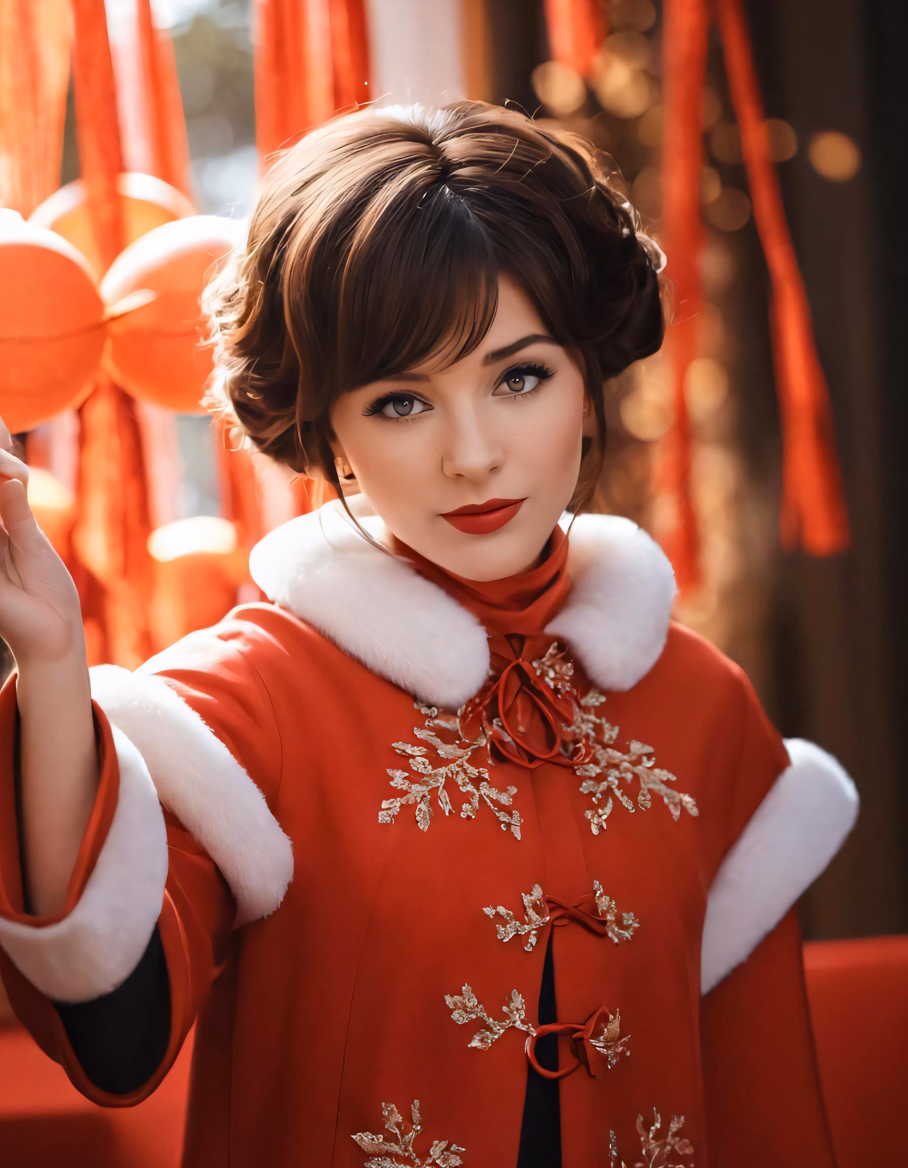 High resolution picture, free to use, a beautiful woman in red posing for the camera