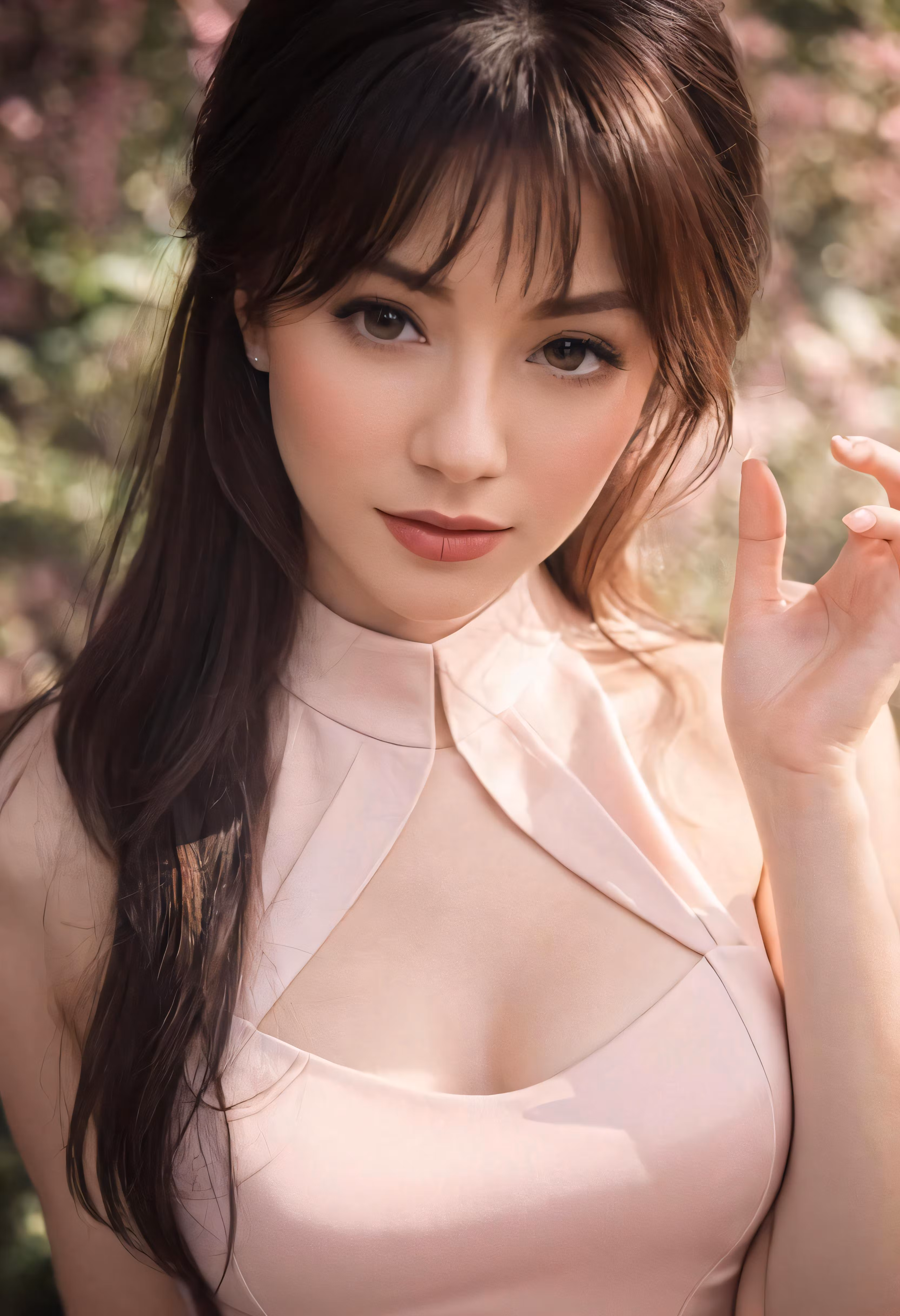 High resolution picture, free to use, a beautiful woman posing for a photograph wearing a pink dress