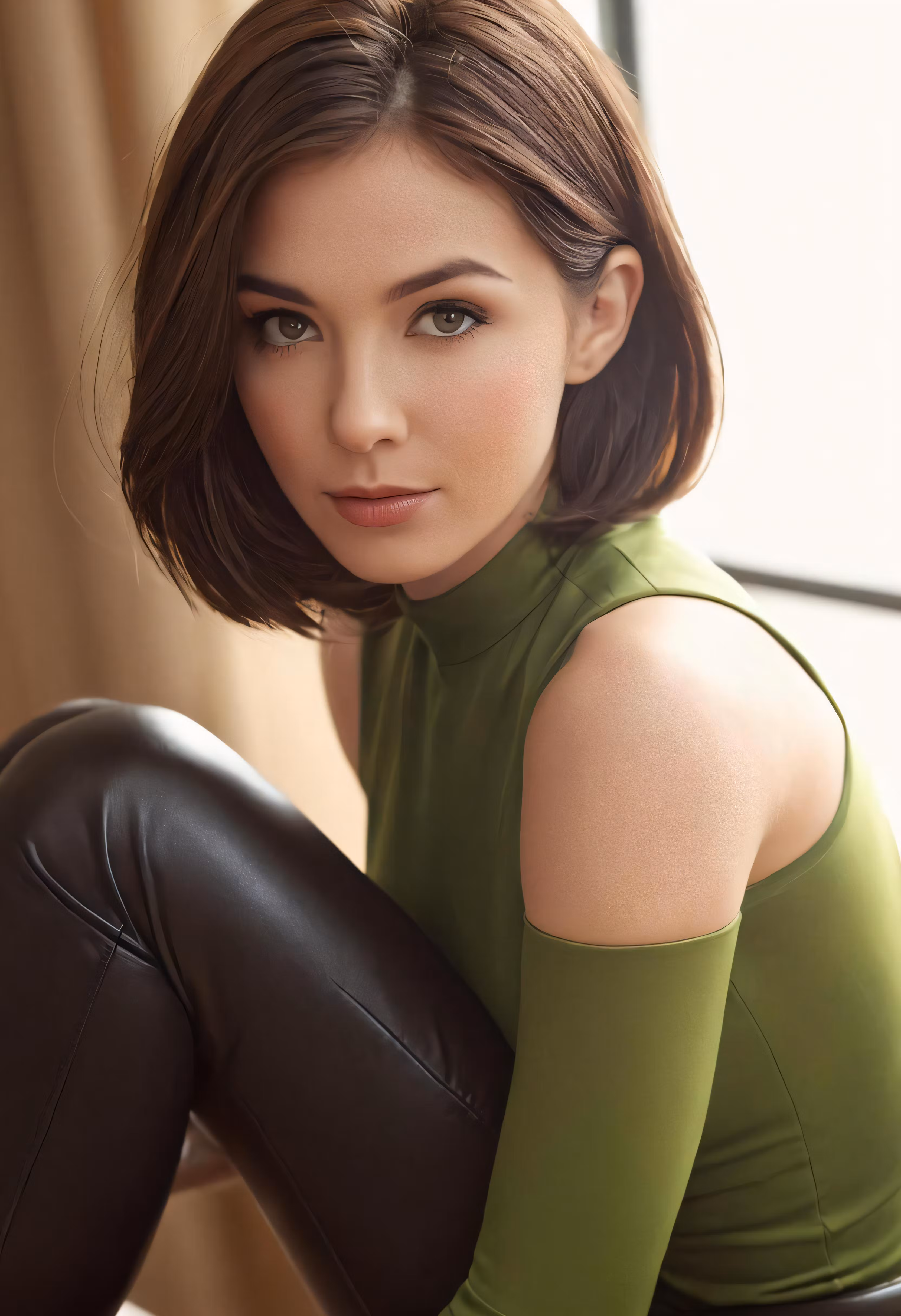 High resolution picture, free to use, a beautiful woman sitting in a chair and wearing green top