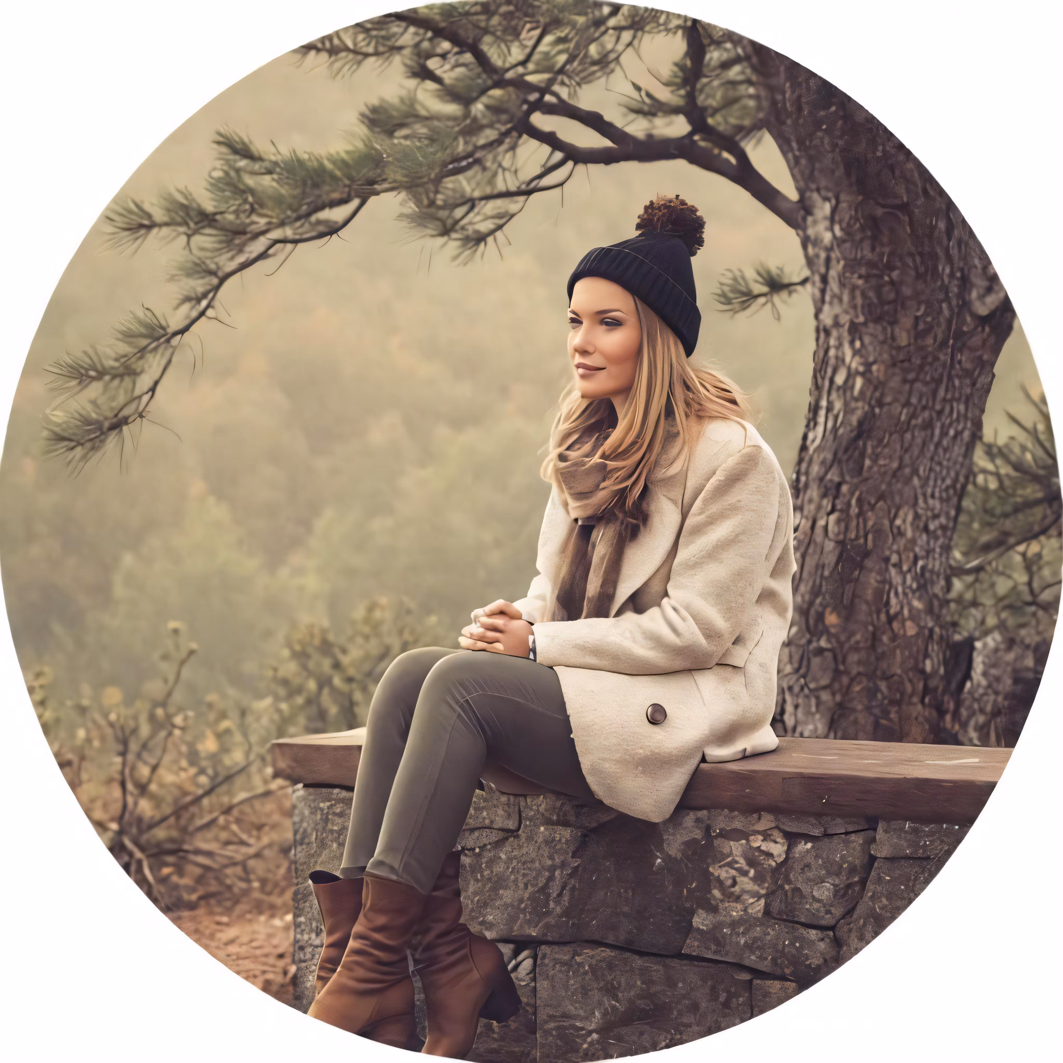 High resolution picture, free to use, a beautiful woman sitting on a stone wall