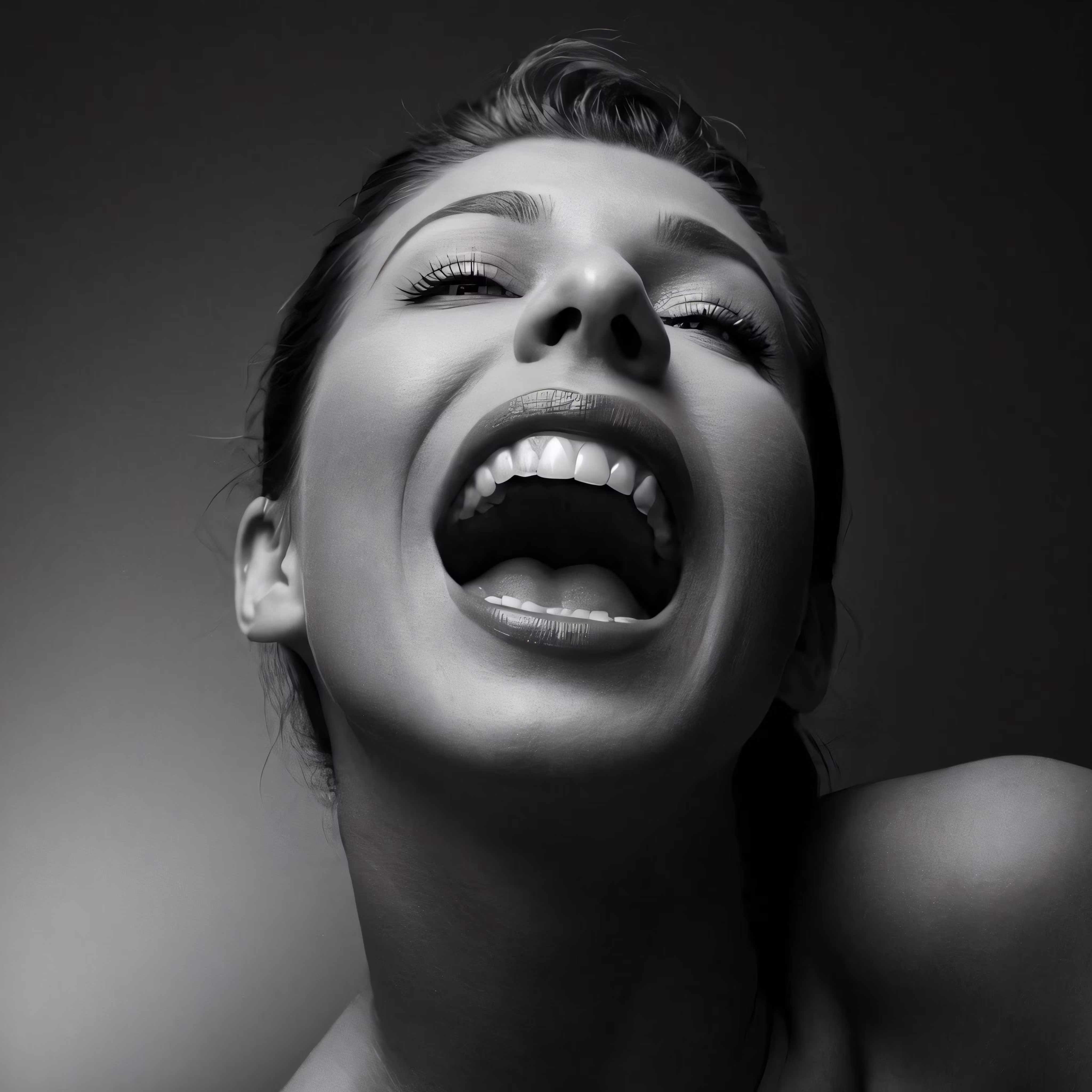 High resolution picture, free to use, a beautiful woman smiling while looking in the mirror