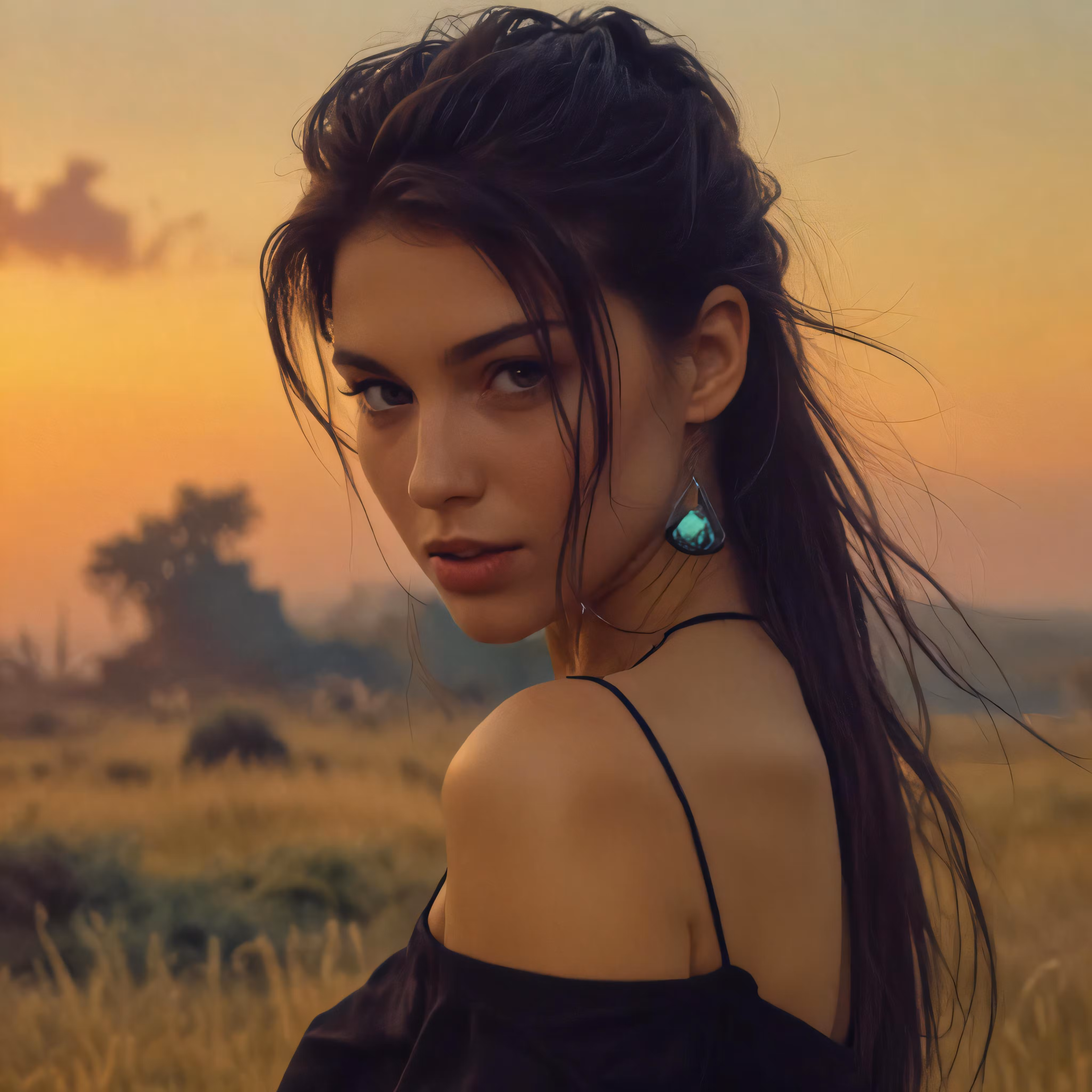 High resolution picture, free to use, a beautiful woman standing in the middle of a field