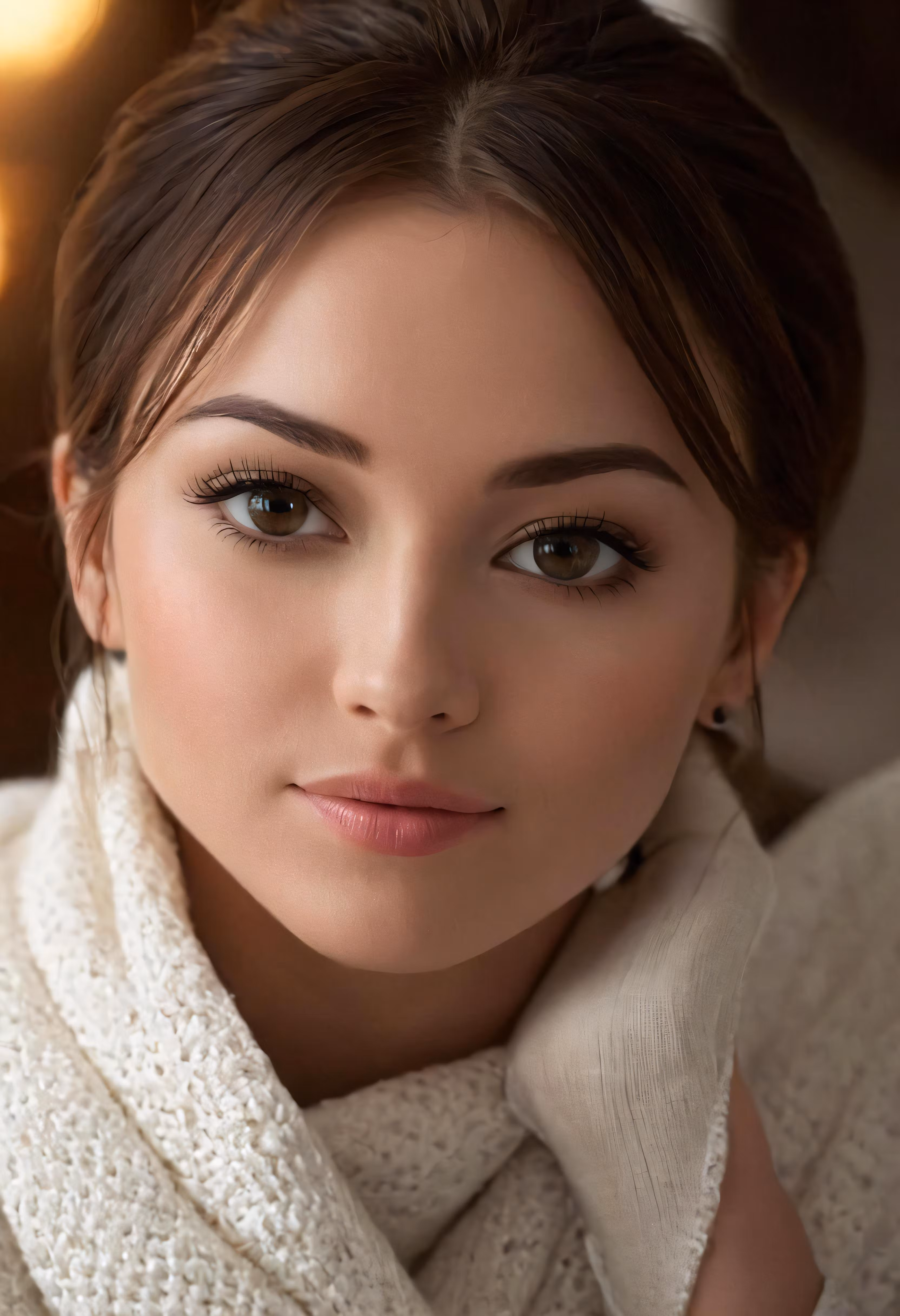 High resolution picture, free to use, a beautiful woman wearing a white scarf with a red lipstick
