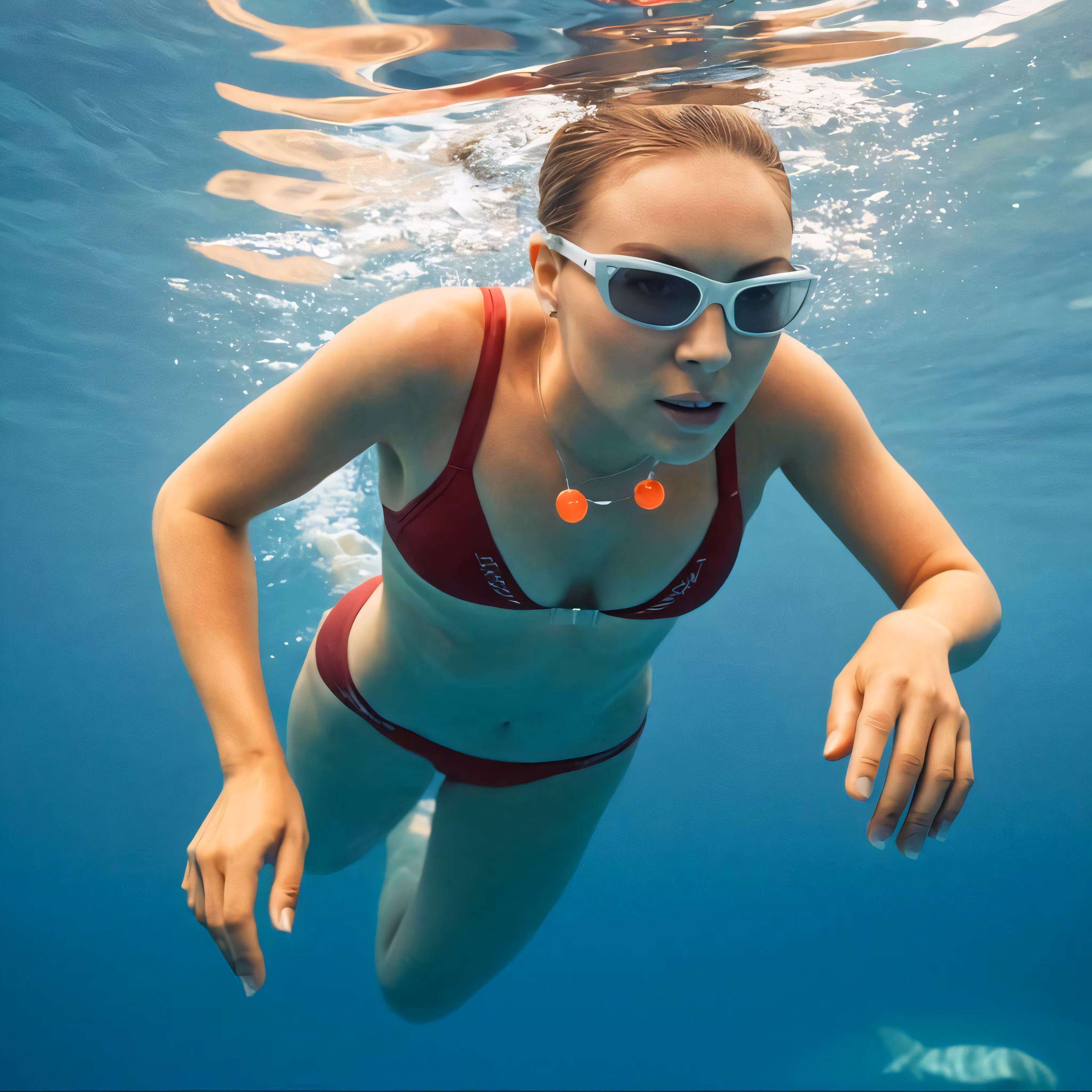 High resolution picture, free to use, a beautiful woman wearing sunglasses in the water