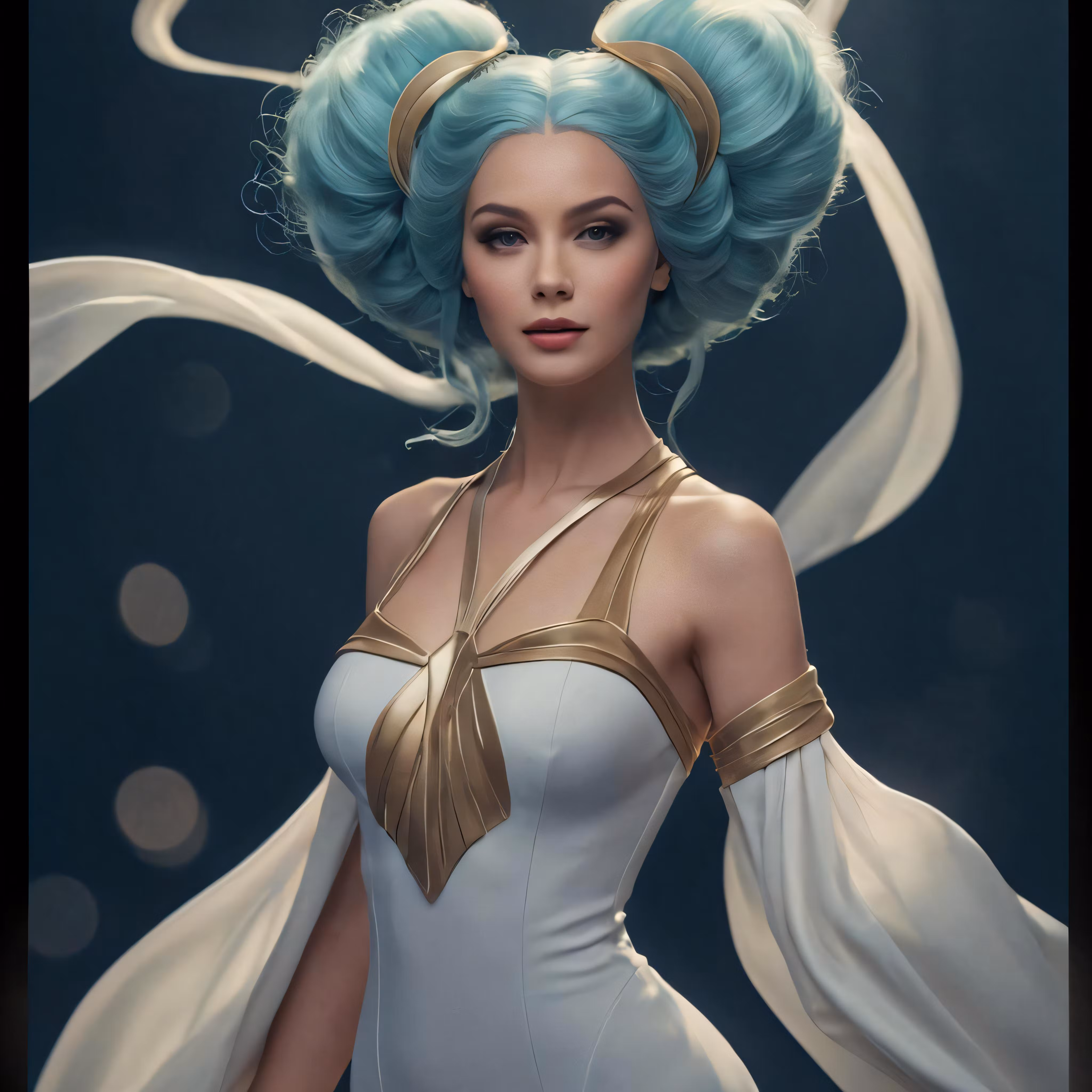 High resolution picture, free to use, a beautiful woman with blue hair wearing white