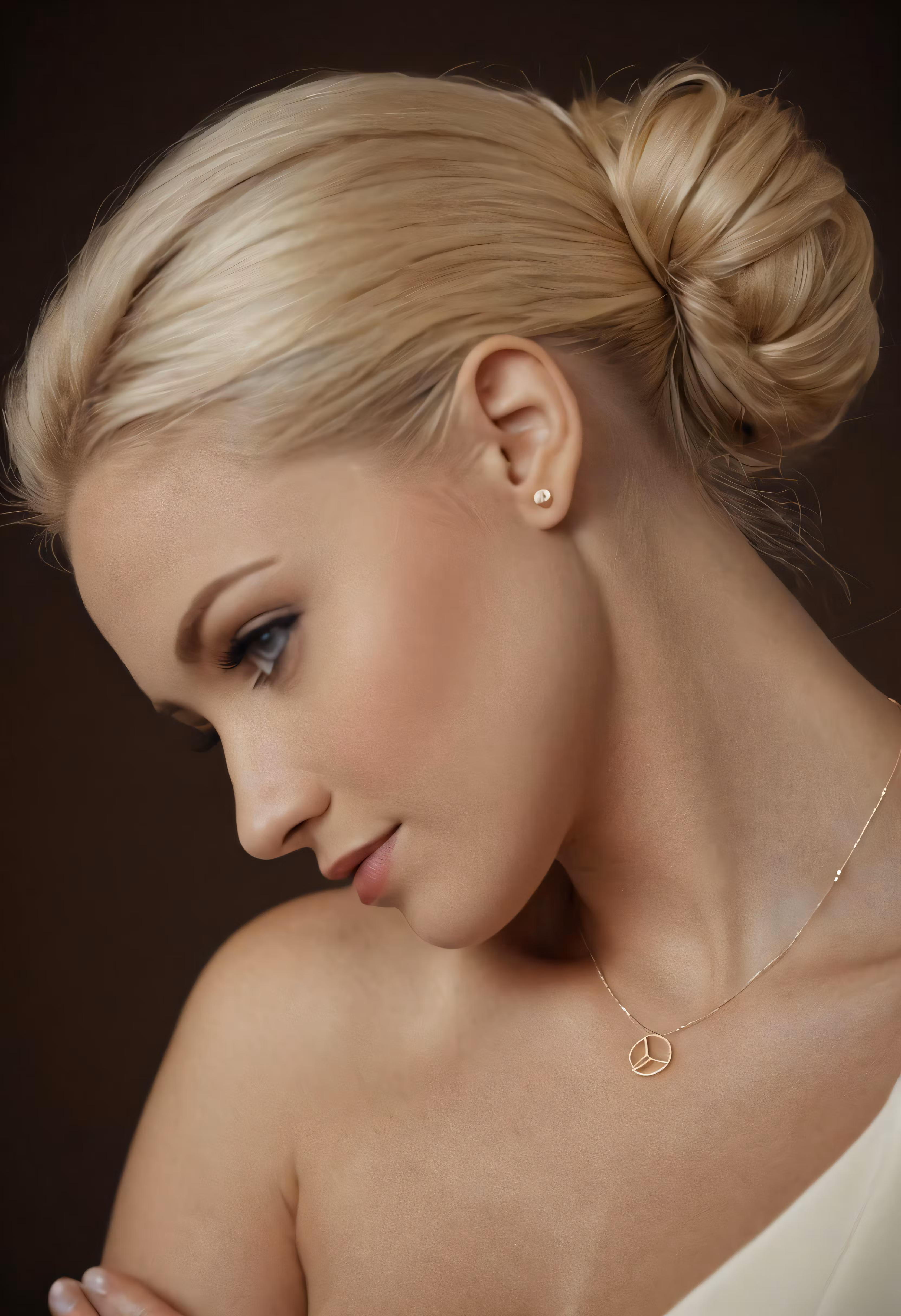 High resolution picture, free to use, a beautiful woman with long blond hair wearing a necklace