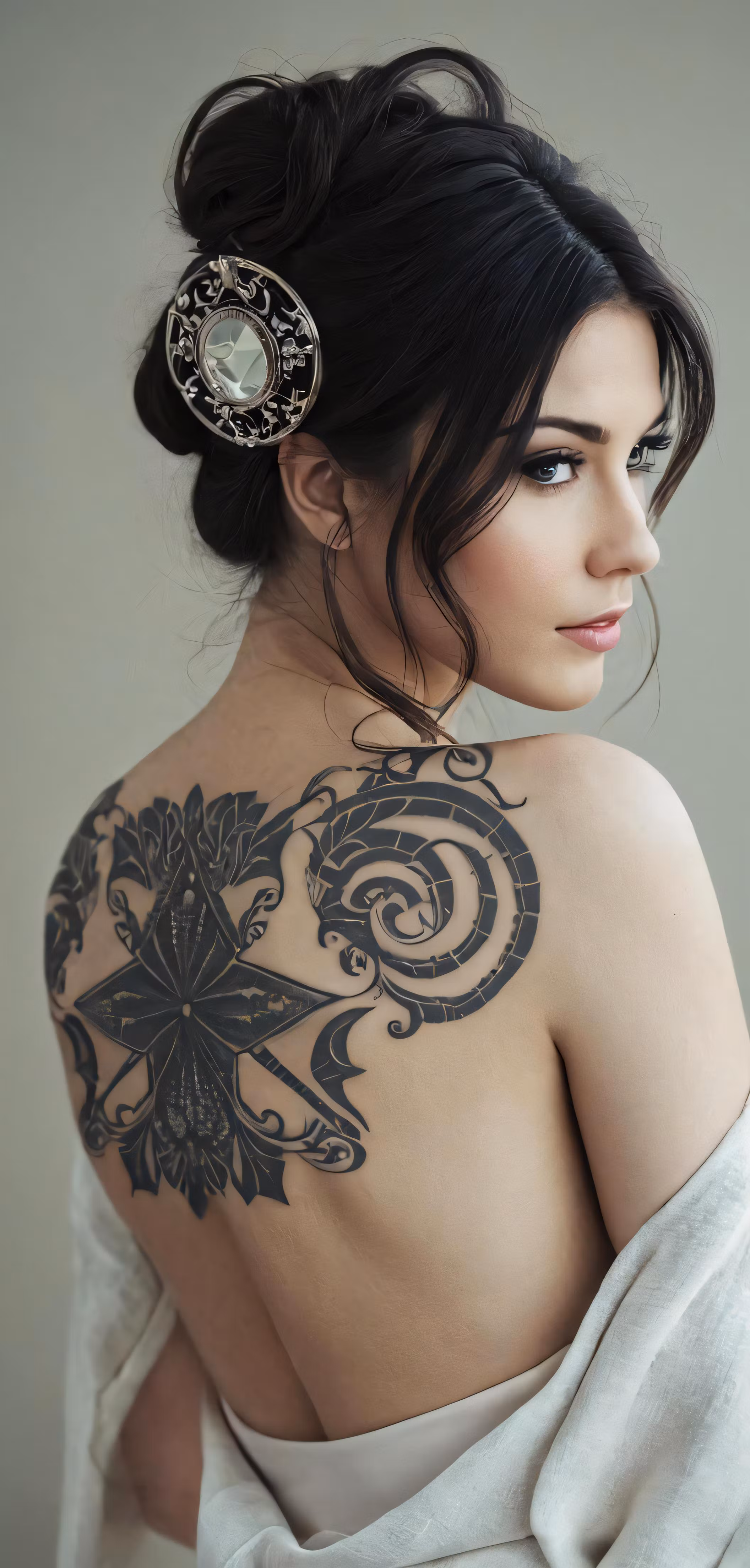 High resolution picture, free to use, a beautiful woman with tattoo on her back