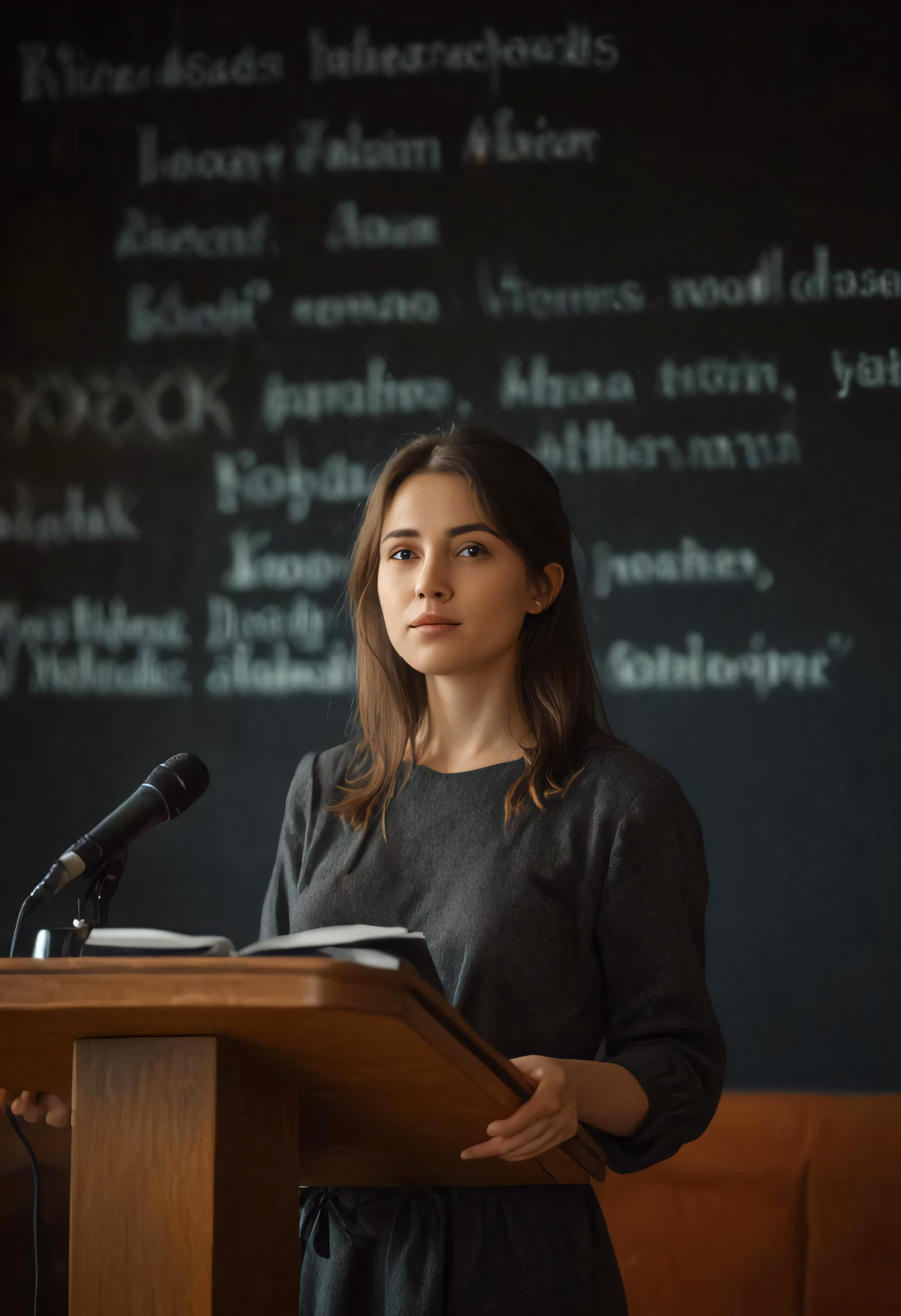 High resolution picture, free to use, a beautiful young lady standing at a podium