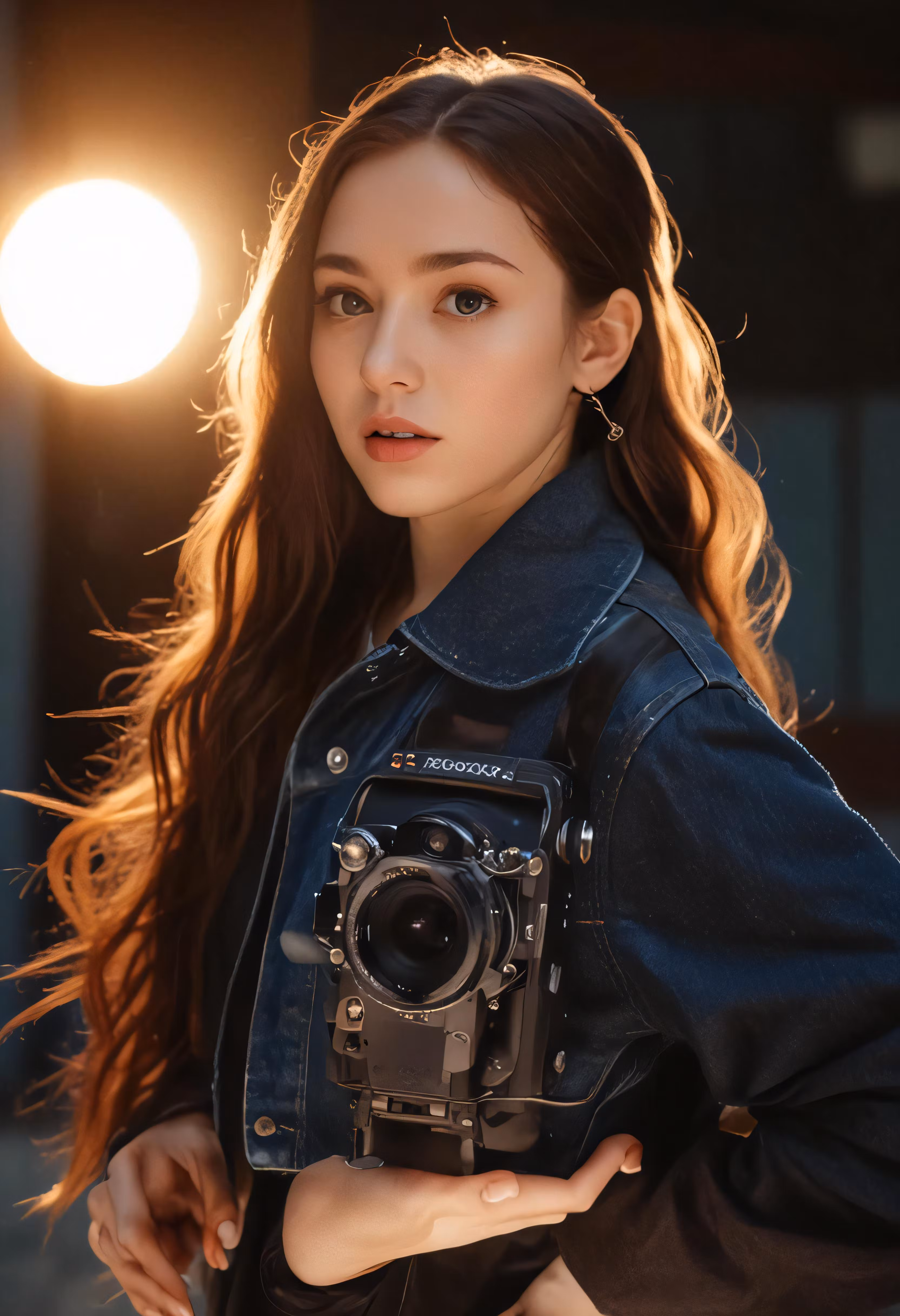High resolution picture, free to use, a beautiful young woman holding a camera in her hand