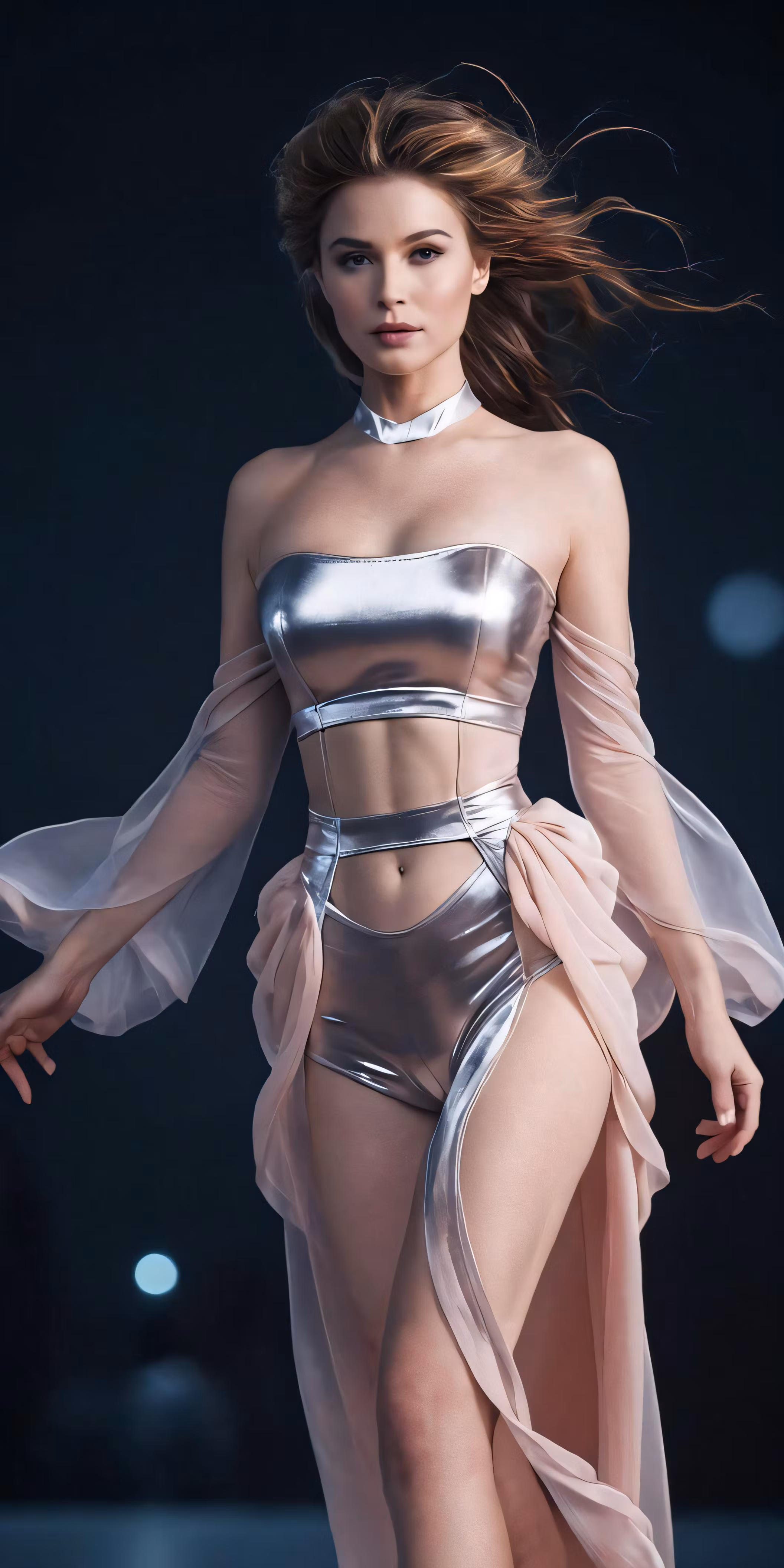 High resolution picture, free to use, a beautiful young woman in a metallic outfit