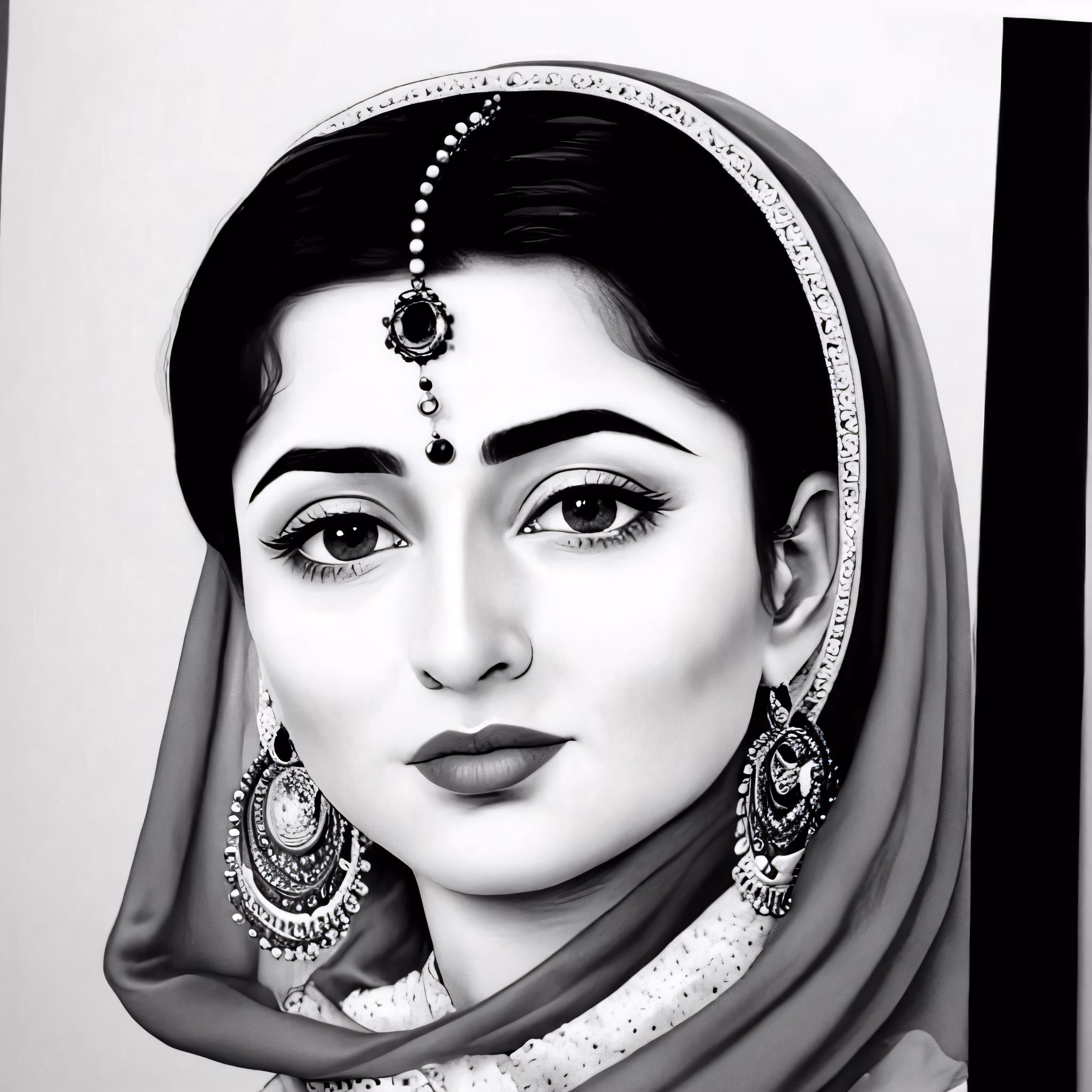 High resolution picture, free to use, a beautiful young woman in black and white drawing by hand
