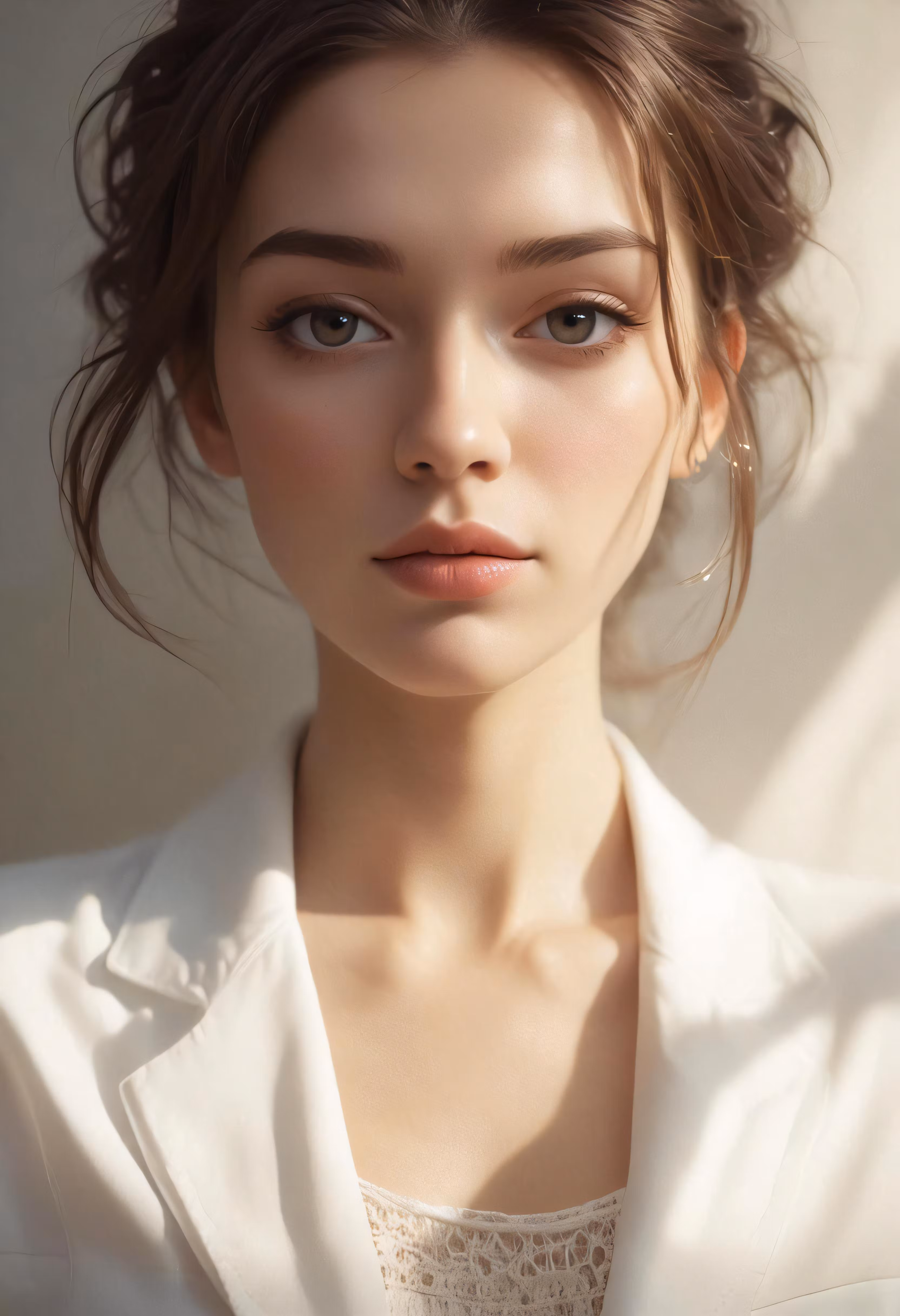 High resolution picture, free to use, a beautiful young woman wearing a white shirt and earrings
