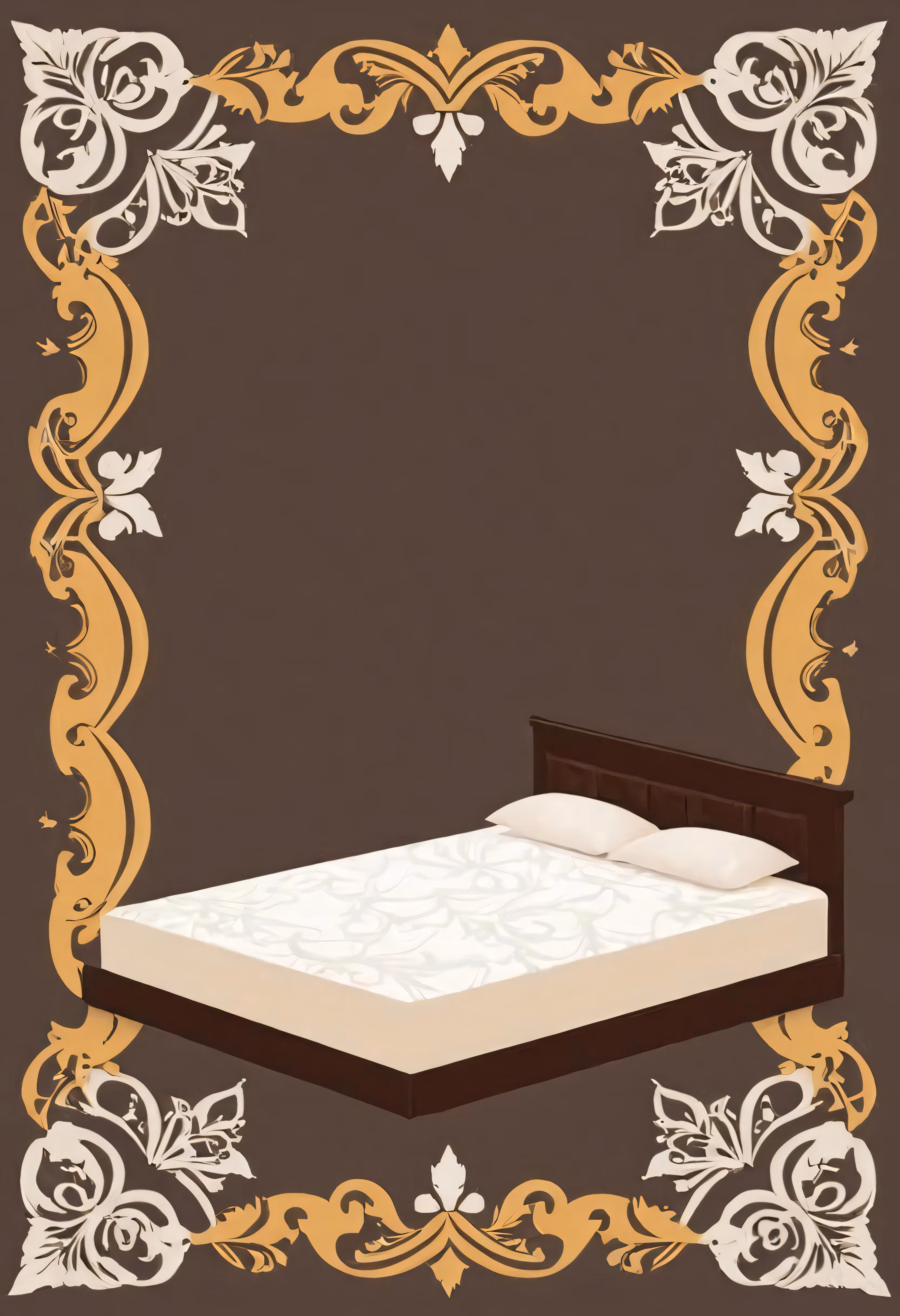 High resolution picture, free to use, a bed that has an ornate frame in the middle