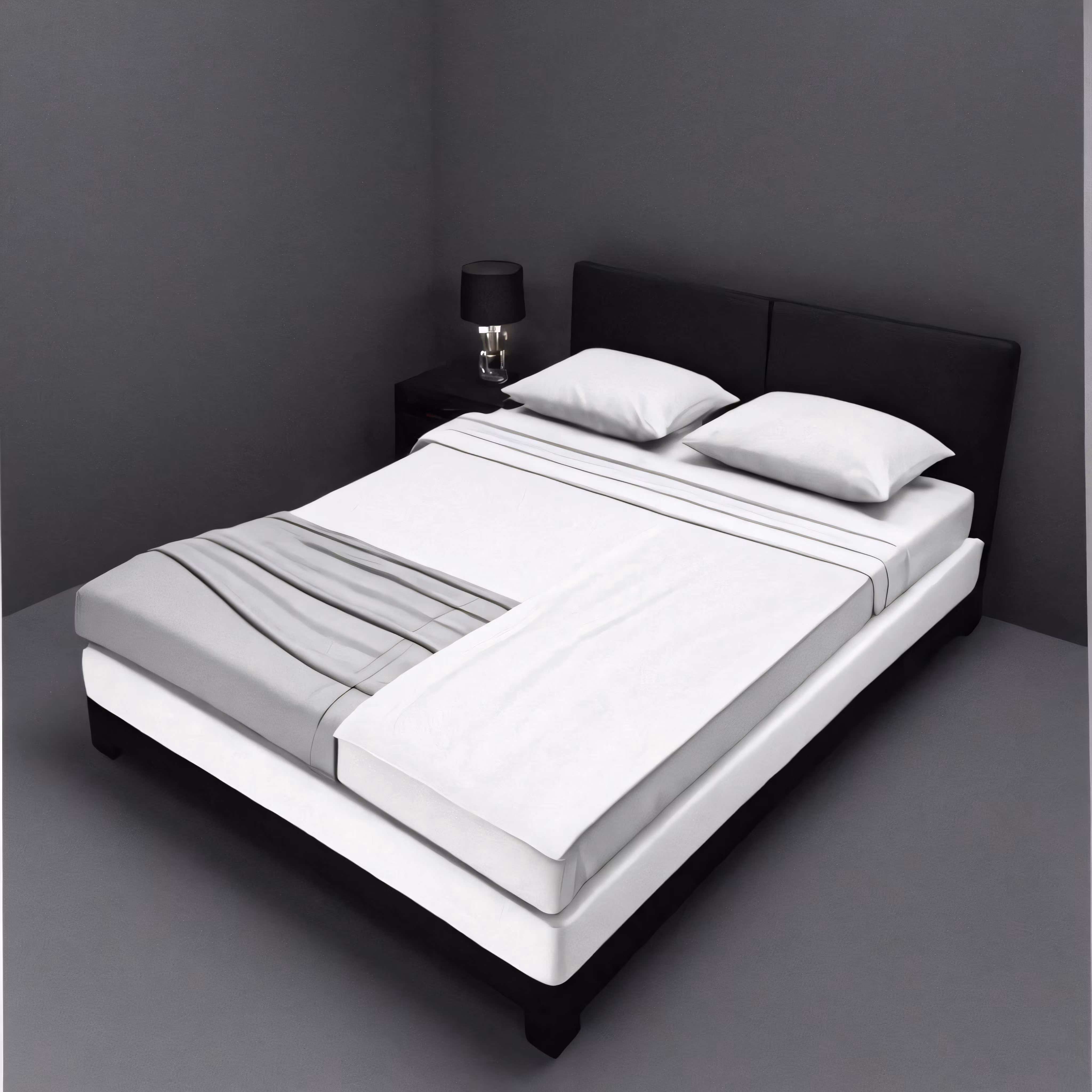 High resolution picture, free to use, a bed with a mattress and pillow case